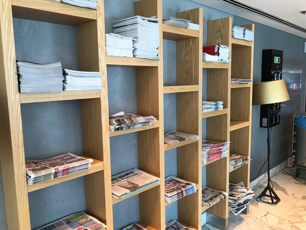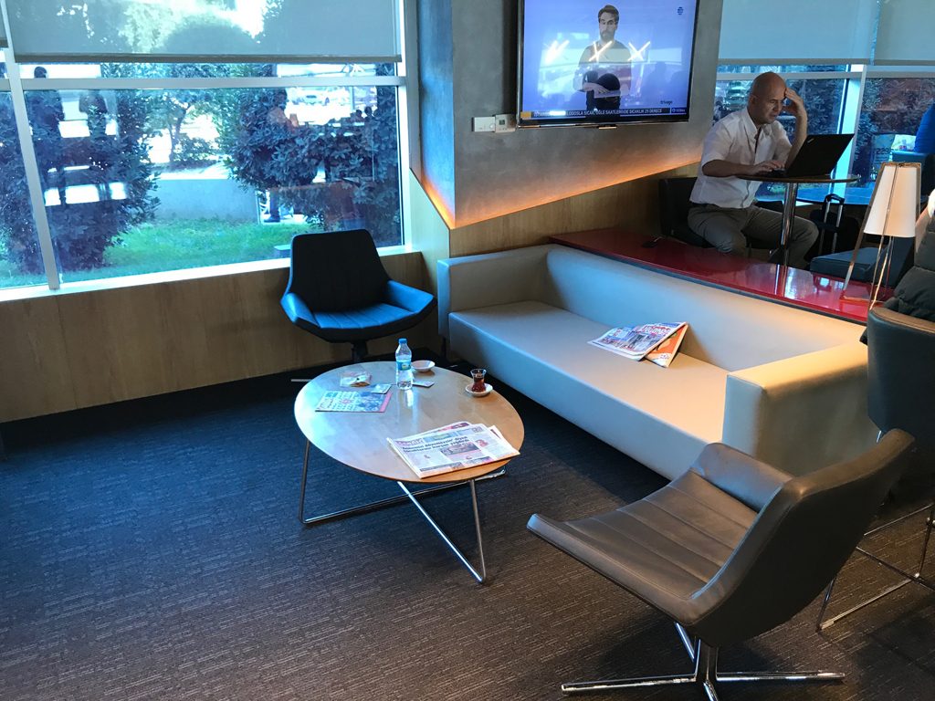 Die Lounge ist, im Vergleich zur großen und internationalen Turkish Airlines Lounge im Nachbarterminal, eher nur für einen kurzen Aufenthalt konzipiert und entsprechend ausgestattet. Es gibt u.a. ein großes Zeitschriften- und Zeitungsregal sowie eine Ladestation für Handys und Smartphones, die sich verriegeln lässt.