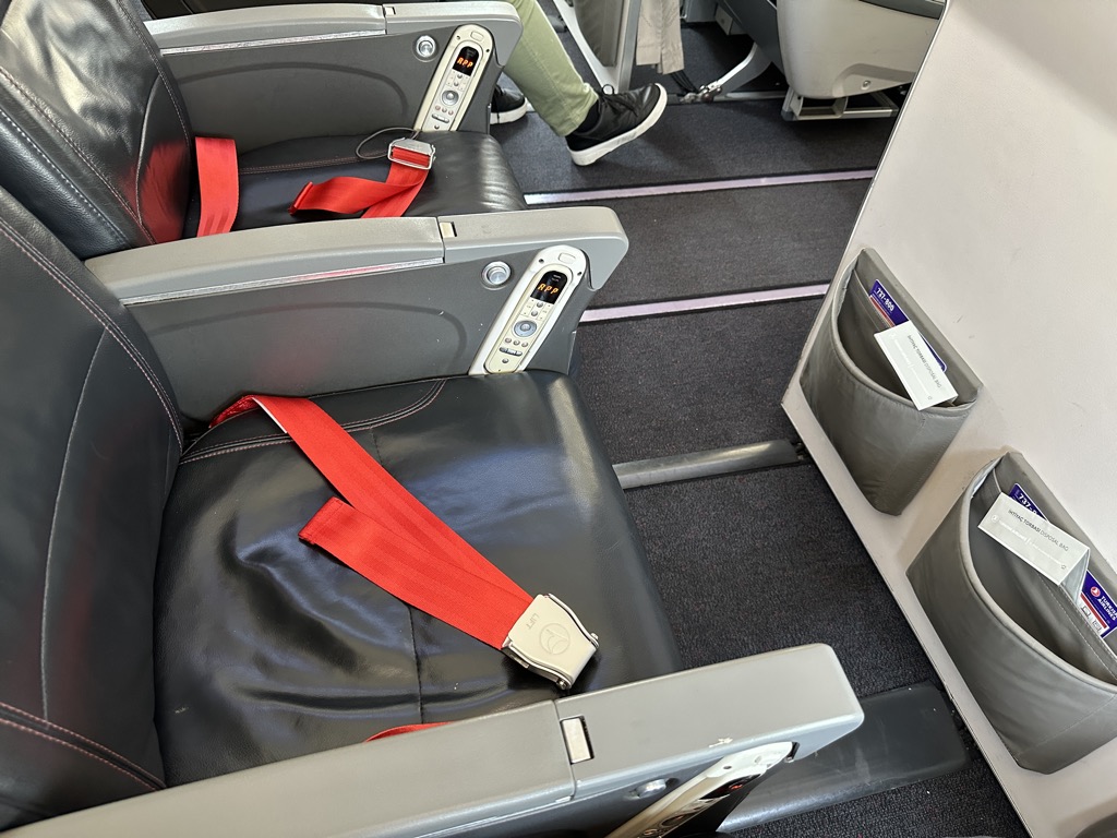 Ich hatte nach dem Boarding die Möglichkeit, mich auf einen Fensterplatz in der sogenannten Bulkhead-Reihe, also der Reihe vor der zwischen Economy Class und Business Class abtrennenden Wand, umzusetzen.