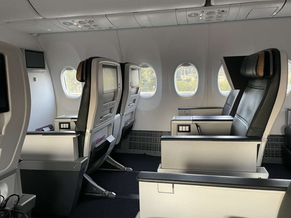 Ich hatte schon einmal auf einer Reise mit einem Airbus A321 NEO von Turkish Airline das Vergnügen mit diesem Sitz und bin immer noch begeistert, denn sowohl das Maß an Komfort als auch die Privatsphäre sind überzeugend.