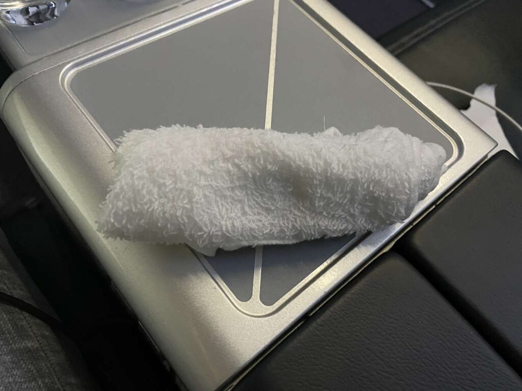 Ich wählte die Rinderbäckchen, die super zart waren und ein wirklicher Genuss waren. Auch die Vorspeisen konnten bei mir punkten. Und während ich den Käse als Nachspeise gerne annahm, ging das Erdbeer-Törtchen (leider) unangetastet zurück. Zu meiner Überraschung erhielten auch nach dem Essen nochmals alle Business Class-Passagiere ein feuchtes Tuch ausgehändigt.
