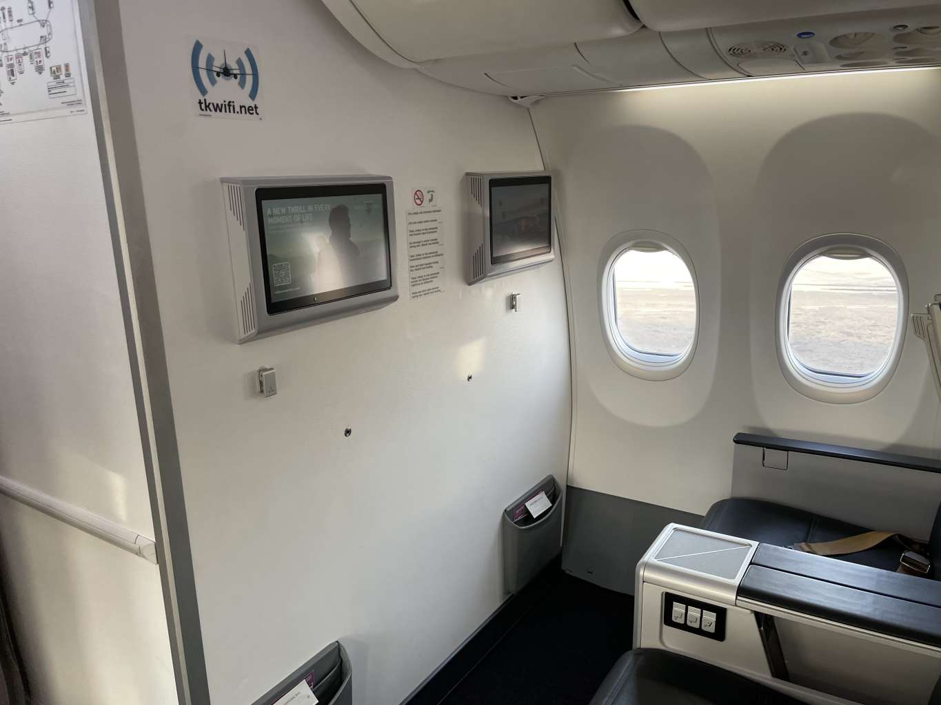 Da mein Nebensitz nach dem Signal „Boarding completed“ frei blieb, wechselte ich doch noch spontan auf den Fensterplatz 2A, ehe sich die TC-LCI über das Rollfeld in Richtung Startbahn begab und mit einer Viertelstunde Verspätung Richtung Türkei startete.