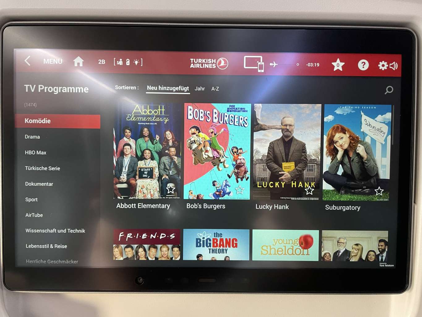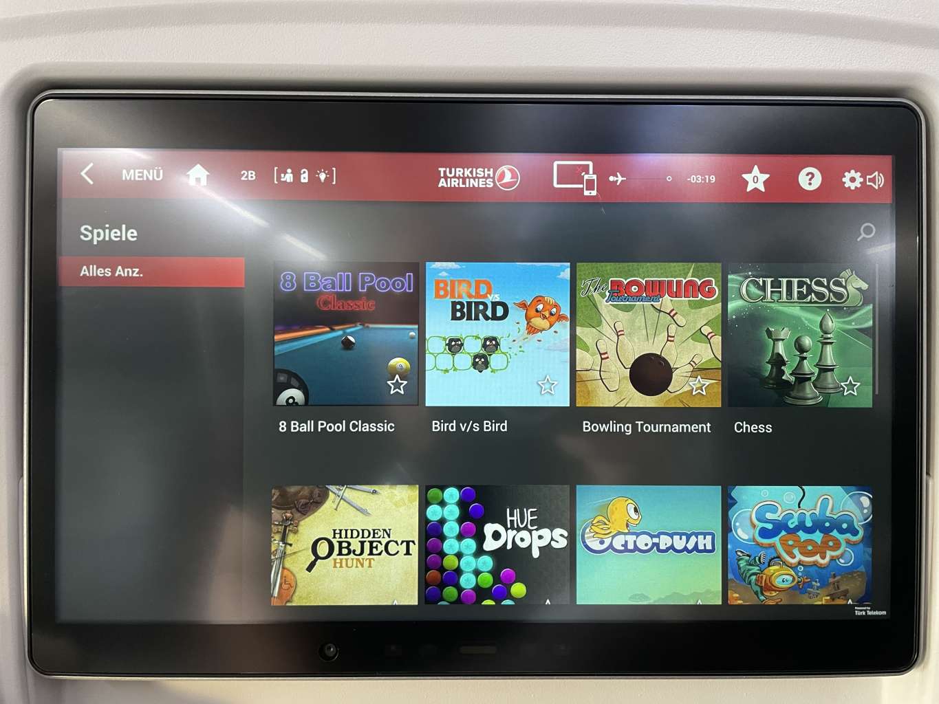 Auch auf der Turkish Airlines Kurzstrecke findet Ihr ein volles Inflight-Entertainment-System in allen Reiseklassen. In der Business Class befindet sich der Bildschirm im Sitz des Vordermanns (in der ersten Reihe an der Wand), der per Fernbedienung vom eigenen Sitz oder auch per touch bedient werden kann. Das Inflight-Entertainment System enthält zahlreiche Filme in unterschiedlichsten Sprachen, Musik, einen Inflight-Map und auch Videospiele.