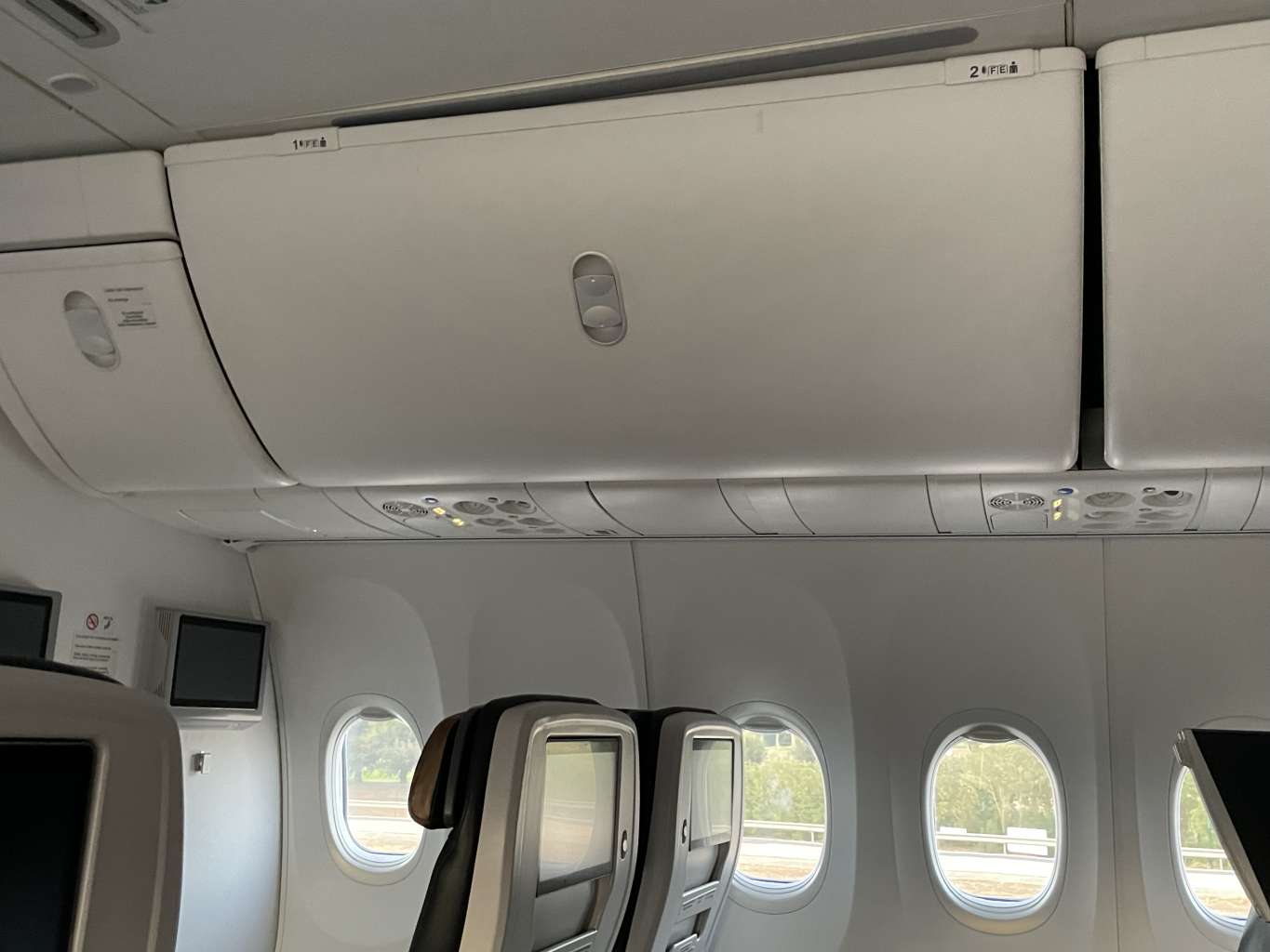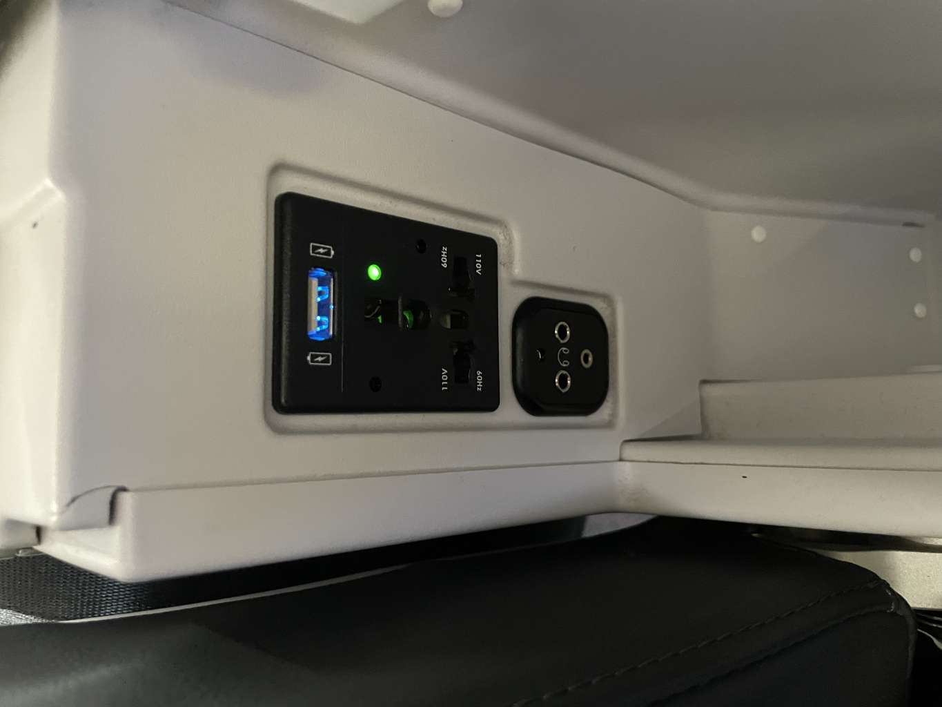 Persönliche Geräte können über die vorhandenen Steckdosen oder USB-Anschlüsse geladen und die Luftzufuhr über ein Panel über dem Kopf gesteuert werden.