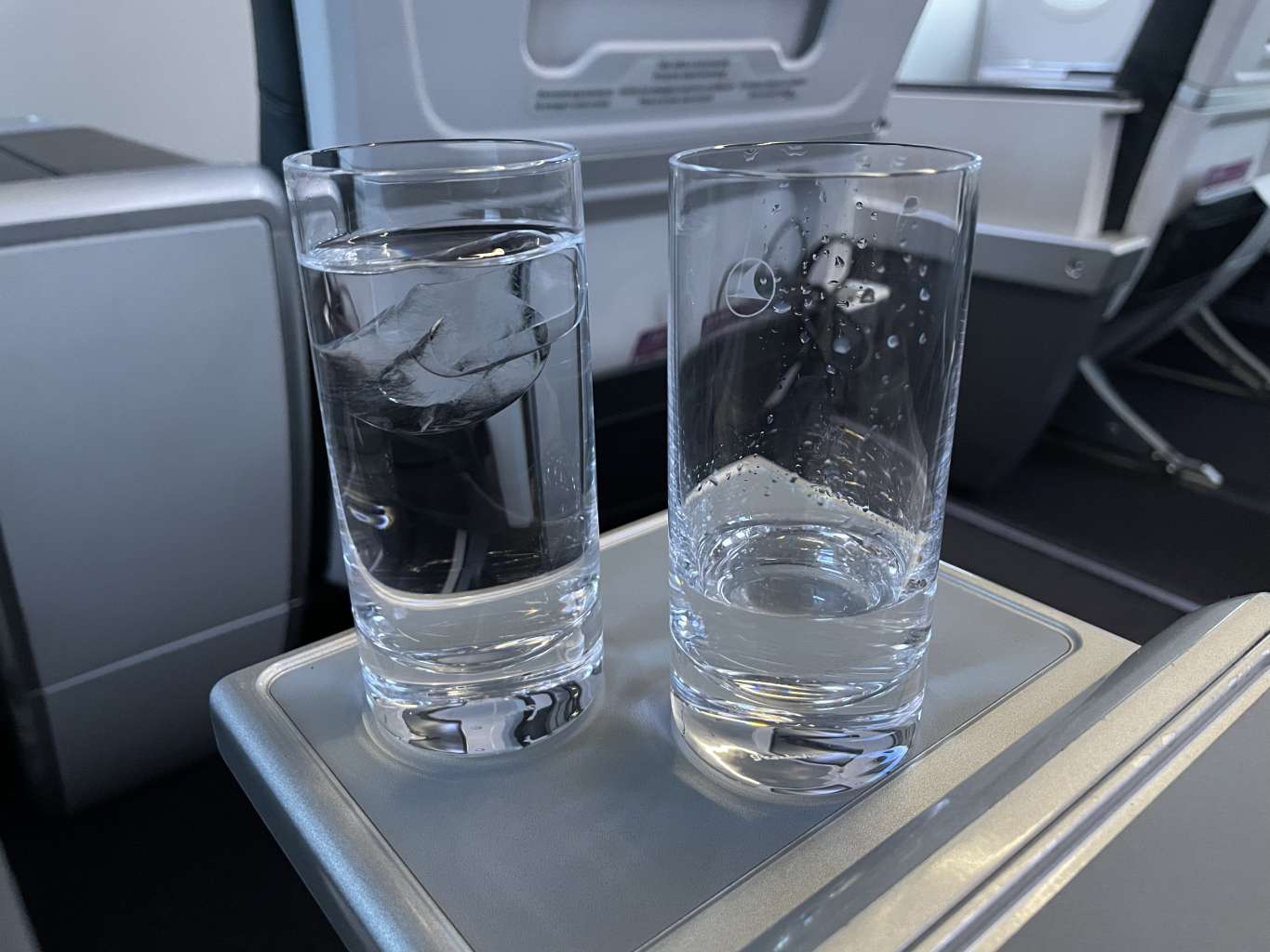 Nachdem alle Passagiere an Bord gegangen waren und auch im vorderen Teil der Kabine wieder etwas Ruhe eingekehrt war, begann die Kabinenbesatzung schon mit dem Service. Auf einem Tablett wurde mir zunächst eine Auswahl an Säften und Wasser als Welcome Drink angeboten. Champagner oder anderen Alkohol gab es in dem Fall nicht, was mich aber persönlich nicht störte. Danach wurden mir und den anderen Business Class Passagiren noch die Speisekarte für diesen Flug sowie Noise-Cancelling-Kopfhörer ausgehändigt. Auch zusätzliche Kissen hätte es auf Wunsch gegeben. Ein Amenity-Kit war für diesen kurzen Flug jedoch nicht vorbestimmt.