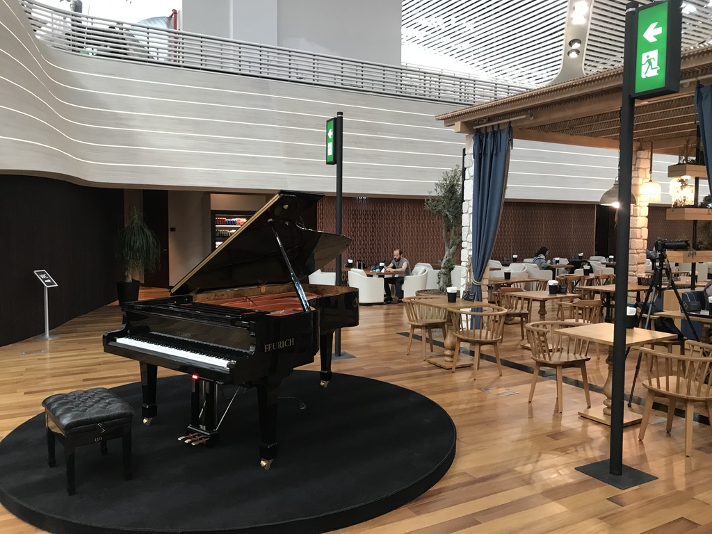 Am Haupteingang der Lounge befindet sich zunächst eine große Schließfachanlage, in der sperriges bzw. nicht benötigtes Handgepäck während des Aufenthaltes verstaut werden kann. Auch das automatisch spielende Klavier begrüßt die Gäste hier wieder.