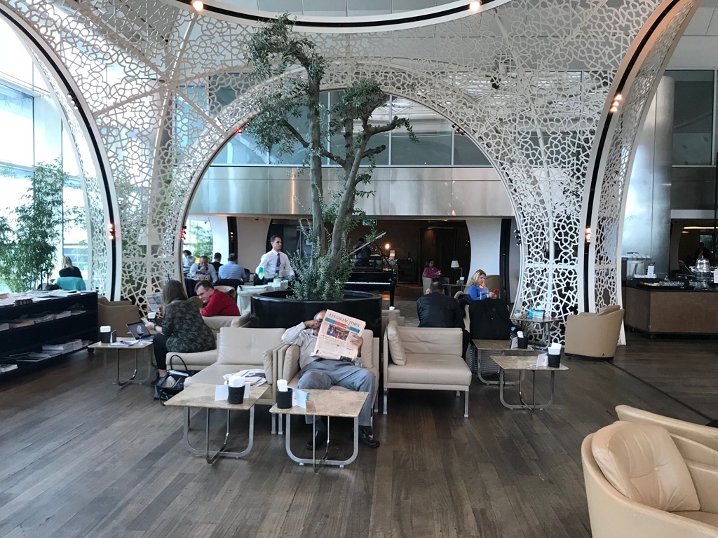 Wie eingangs erwähnt, ist die Lounge auf zwei Stockwerken angesiedelt. Ein großer Treppenbereich und mehrere Aufzüge verbinden die beiden Etagen miteinander.