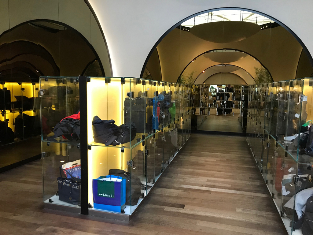 Am Eingang der Lounge befindet sich zunächst eine große Schließfachanlage, in der sperriges bzw. nicht benötigtes Handgepäck während des Aufenthaltes verstaut werden kann. Auch kann man nach dem Betreten gleich eine Runde am Billardtisch spielen bzw. ein Buch ausleihen.