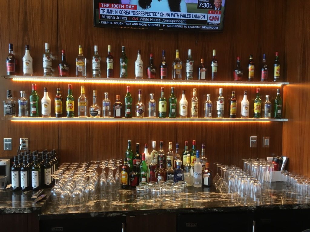 Natürlich findet man auch eine Reihe von Getränken in der Lounge. So stehen in Kühlschränken unter dem Buffet alkoholfreie Getränke zur Selbstbedienung. An der Bar im hinteren Raum kann man grundsätzlich auch alkoholische Getränke erhalten, allerdings muss man hier häufig (oder in meinen Fall bei jedem Besuch) einen Mitarbeiter bitten, den Barkeeper zu rufen. Eigentlich schade, denn die Bar ist wirklich gut bestückt!