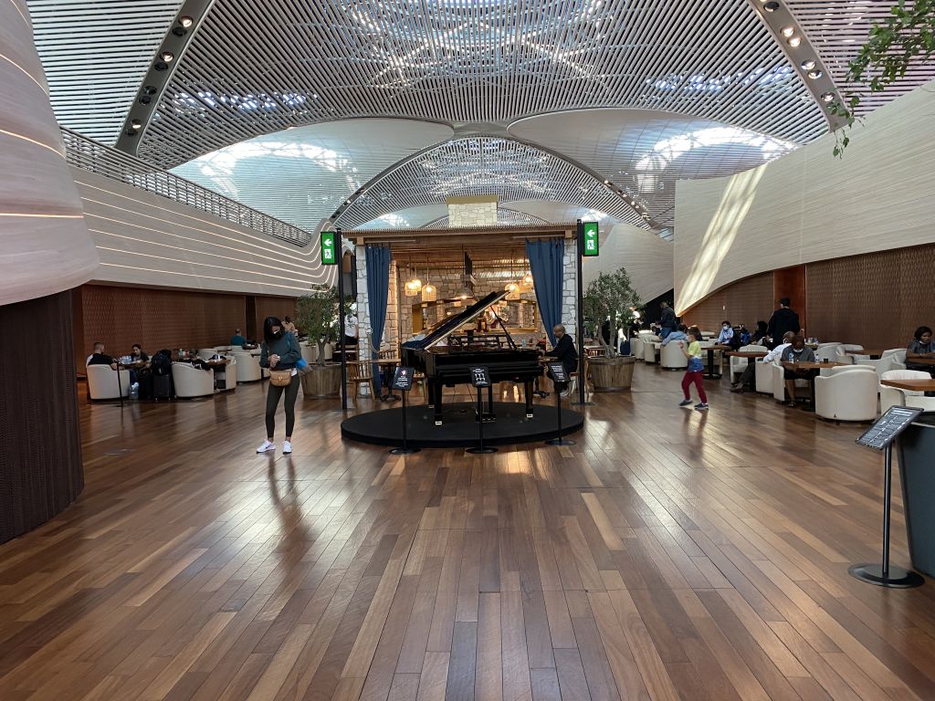 Im Normalbetrieb bietet die Lounge Sitze für 765 Personen und zwölf Zimmer mit eigenen Bädern. Wir haben nicht nachgezählt, ob die Anzahl der Plätze eingeschränkt wurde, während unseres Aufenthalts wurde es jedoch recht voll und zeitweise waren kaum freie Tische verfügbar, so dass für uns nicht klar war, warum derzeit nur eine der beiden Lounges geöffnet ist.