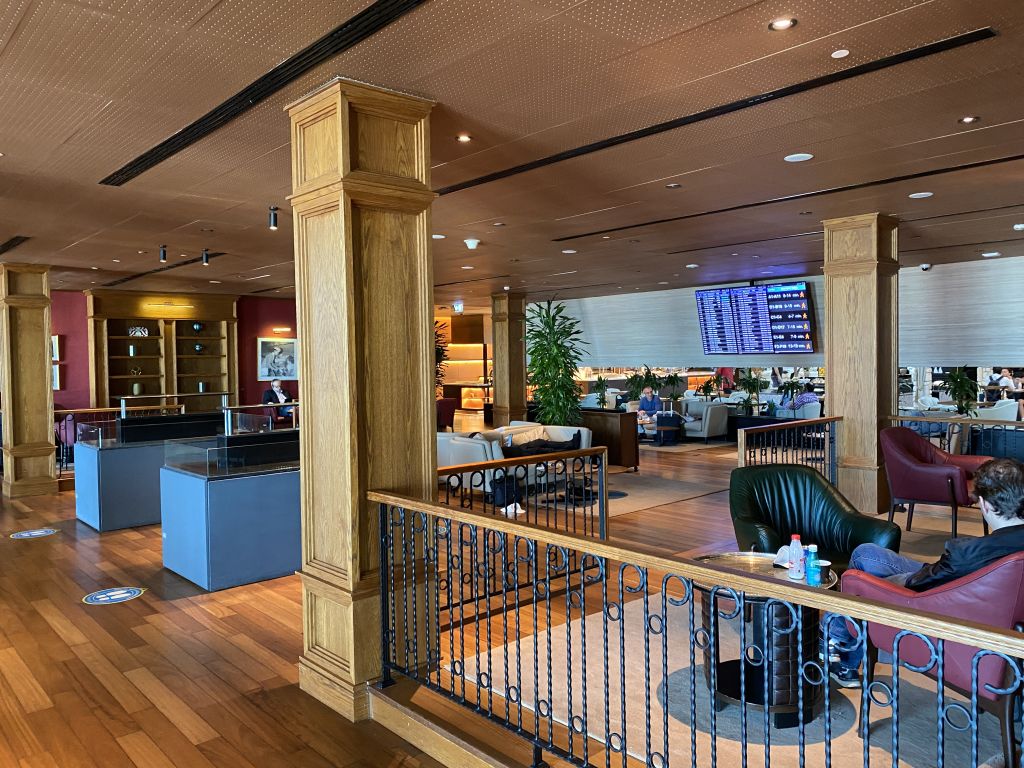 Ich finde die Lounge sehr schön, das Essen ist ausgezeichnet und variantenreivh, due Weine sind auch gut, aber das Angebot an alkoholischen Getränken ist eingeschränkt und der größte Nachteil: Die Lounge ist immer extrem voll, ich habe es nie anders erlebt. Man muss teilweise nach einem Sitzplatz suchen, es ist laut und hektisch.