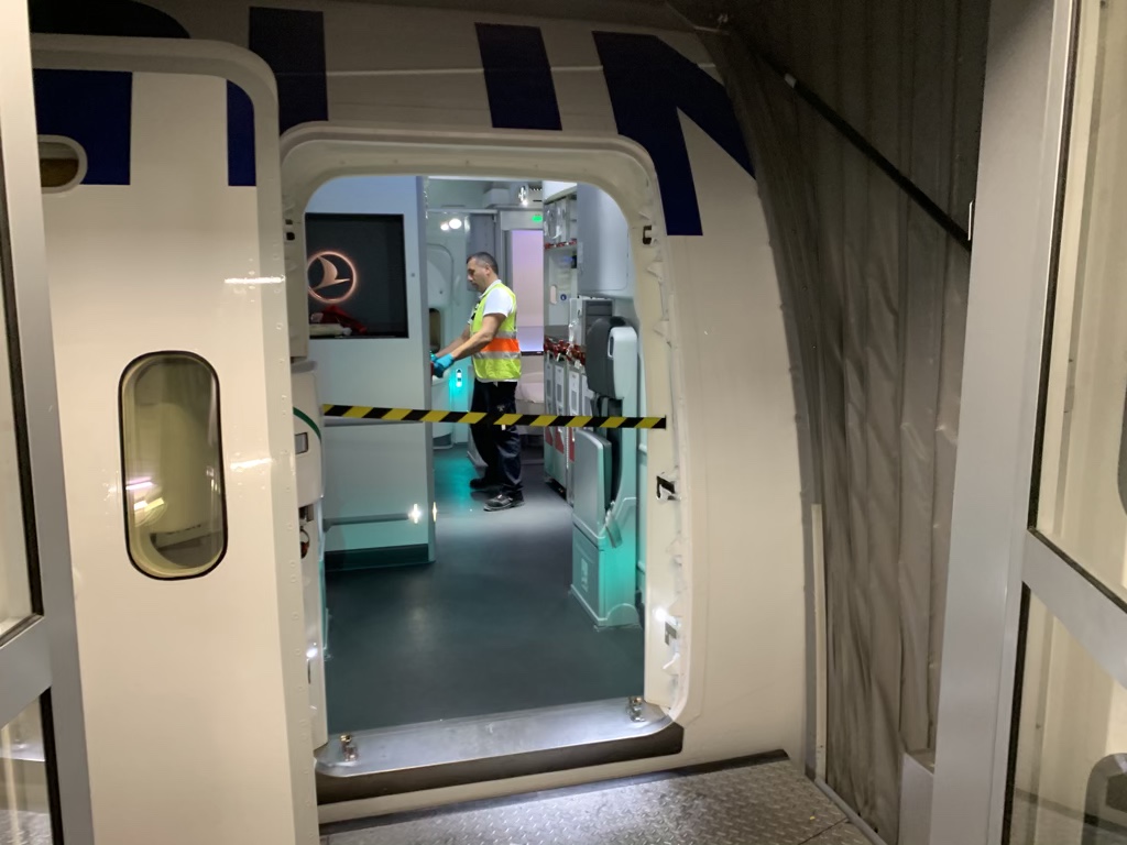 Man hat die Passagiere dann tatsächlich noch 35 Minuten in der Jetbridge stehen lassen, bis man mit der Vorbereitung in der Kabine fertig war und um 1:40 Uhr, also schon zehn Minuten nach der Abflugszeit, habe ich die Kabine betreten.