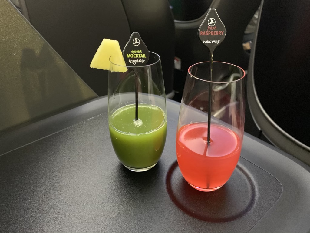 Irgendwann hat der Koch damit begonnen, die Willkommensgetränke zu verteilen. Hierbei gab es wieder die üblichen Turkish Airlines Limonaden, sowie Wasser und Orangensaft. Eine sehr schöne Idee fand ich den Ananas Cocktail, welchen man extra für diesen Flug nach Bali geladen hatte. Dieser wurde kurz nach den Willkommensgetränken allen Passagieren angeboten.