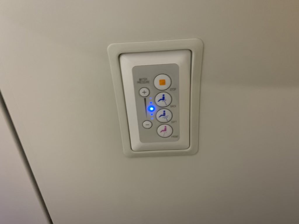 Die Toiletten selbst waren sehr schön gestaltet und mit einigen Amenities ausgestattet. Interessant fand ich auch das eingebaute Bidet, das ich so nur von japanischen Airlines kenne.