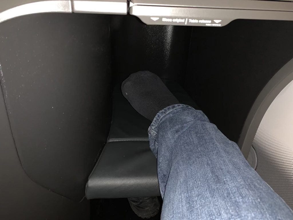 Leider habe ich auf dem neuen Turkish Airlines Business Class Sitz nicht wirklich gut geschlafen, was insbesondere daran lag, dass er in der Bettposition extrem wenig Platz bot. Zum einen war der Sitz recht kurz, sodass ich mit meinen 184 Zentimetern oben und unten im Liegen angestoßen bin, zum anderen war das Fußfach extrem schmal und wohl das kleinste, welches ich je auf einem 13 Stunden Flug hatte.