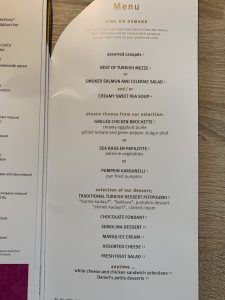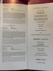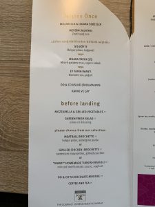 Die Speisekarte von Turkish Airlines laß sich sehr beeindruckend und hatte extrem viele Optionen.