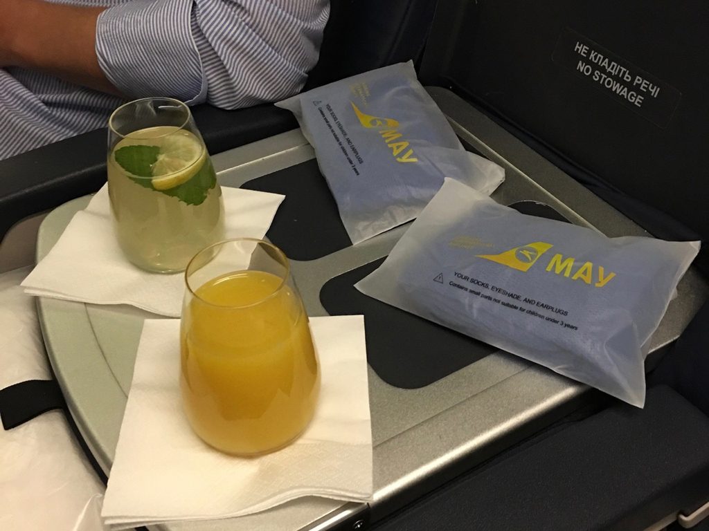 Mit dem Service von Ukraine Airlines war ich sehr zufrieden. Der Service startete bereits am Boden mit einem Welcome Drink. Hier wurde Wasser, Orangensaft und Limonade in verschieden Sorten angeboten.