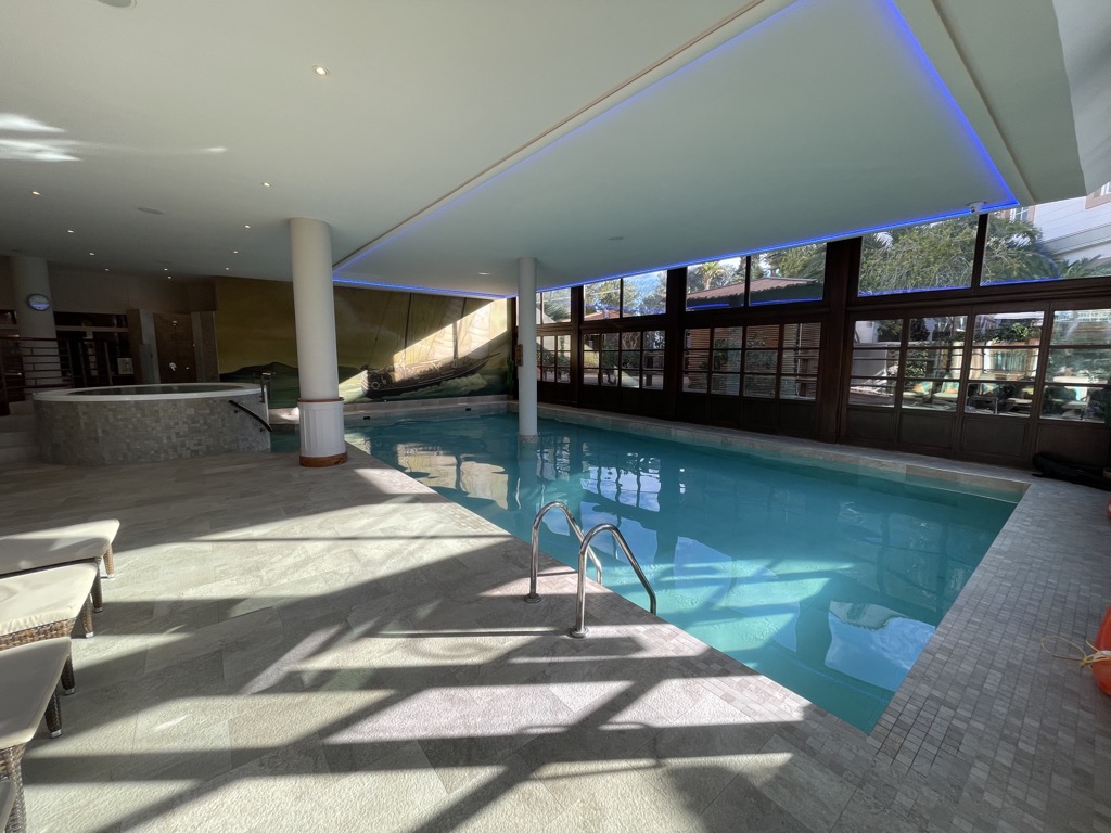 Ein Indoor-Pool hat das Hotel auch, welches im März sehr gut besucht war. Hier gibt es nicht nur ein Schwimmbecken, sondern auch einen Whirlpool. Auch hier liegen ausreichend Handtücher auf den Liegen bereit.