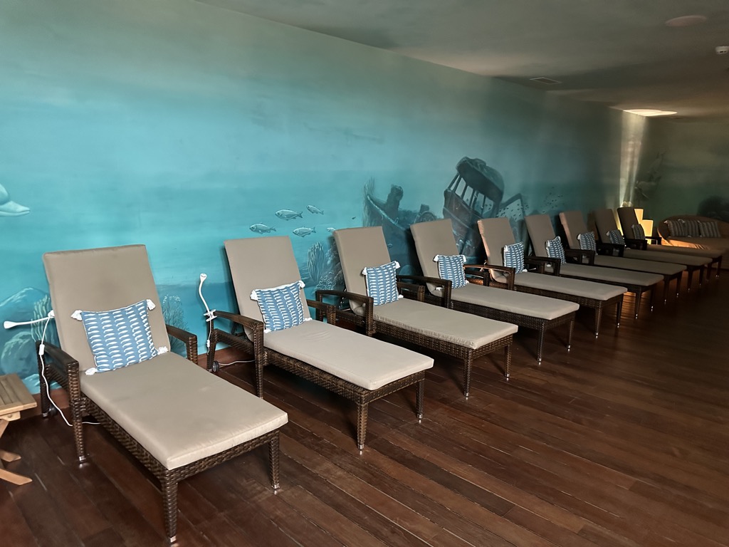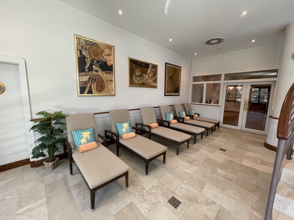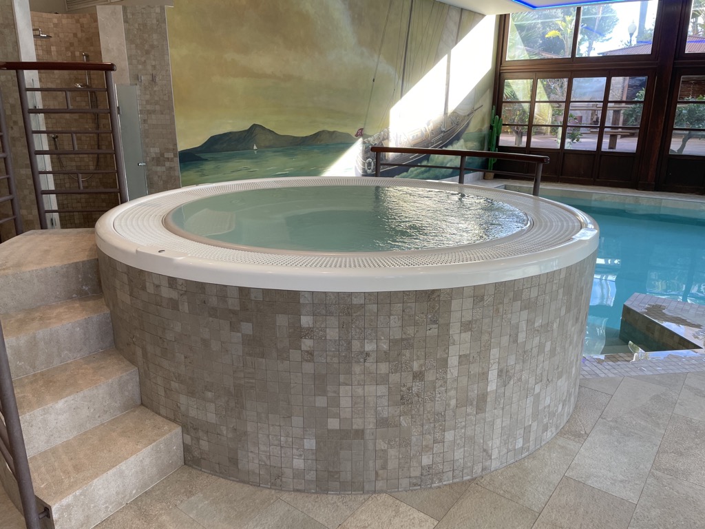 Neben dem Indoor-Pool befindet sich das Spa, in dem man sich verwöhnen lassen kann. Unter dem Pool befinden sich noch Saunen und ein schöner abgedunkelter Ruhebereich.