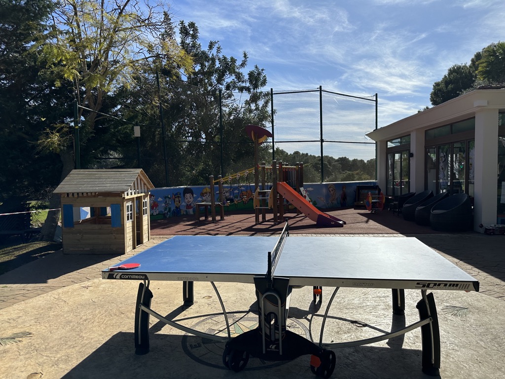 Der Name lässt es nicht direkt vermuten, aber das Lindner Golf Resort Portals Nous hat für Kinder einiges zu bieten. Bereits im Eingangsbereich steht ein Billardtisch, an dem auch erwachsene Kinder Spaß haben ;). Der Pool hat einen leicht abgegrenzten Kinderbereich mit Rutsche und direkt daneben befindet sich vom Poolbereich aus gut einsehbar ein Tischtennistisch und ein Spielplatz mit weichem Boden.