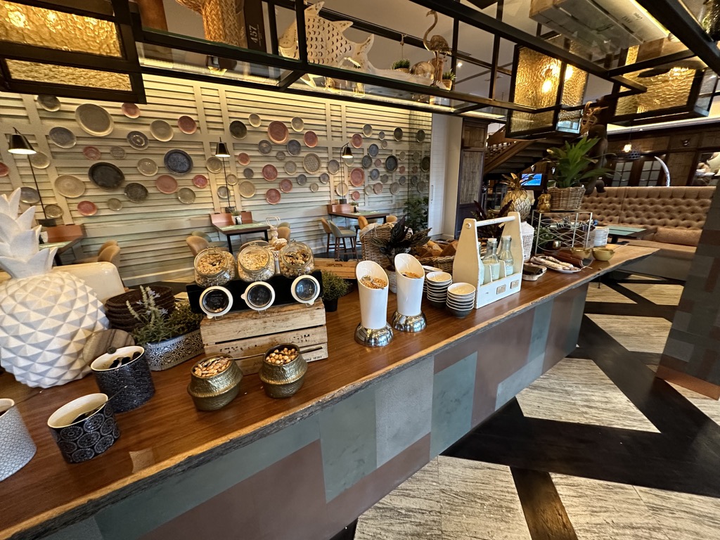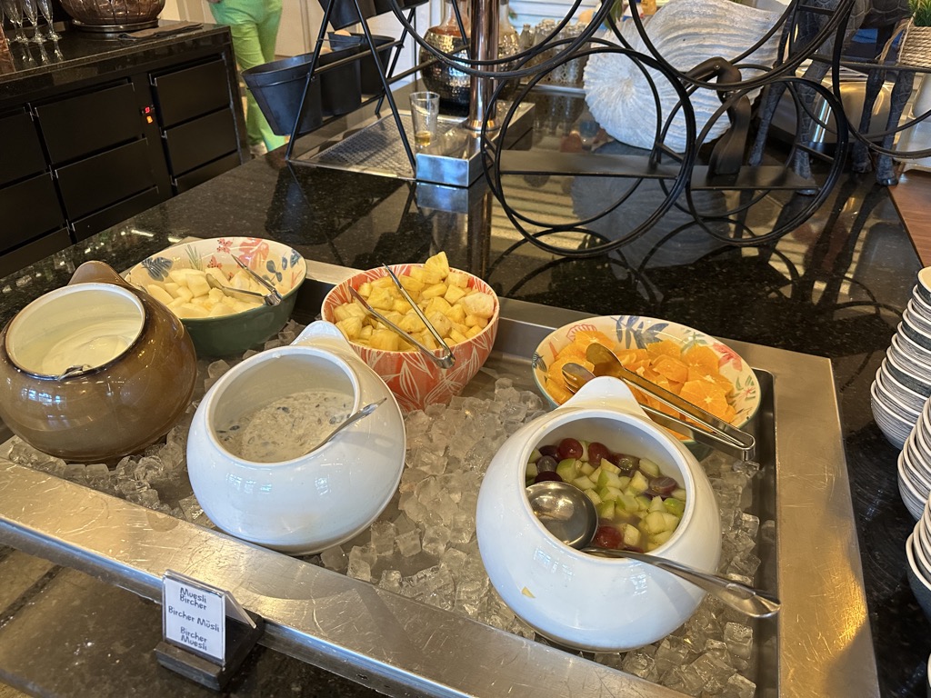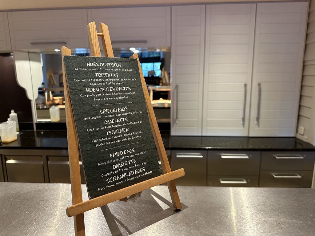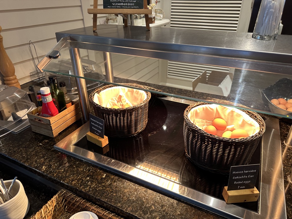 Selbstverständlich war auch jeden Tag ein Koch vor Ort, der eine Auswahl an warmen Gerichten regelmäßig zubereitet und auffüllt und frische Eierspeisen nach Wahl zubereitet. Mich hat sehr gefreut, dass es neben hartgekochten Eiern auch 5-Minuten Eier gab, das findet man tatsächlich nicht in vielen Hotels. Extras wie Ingwer Shots oder Beerencrumble gab es auch an verschiedenen Tagen. Einziges Manko war für uns die Kaffemaschine, die nur einfach vorhanden war. Hier staute es sich morgens immer wieder.
