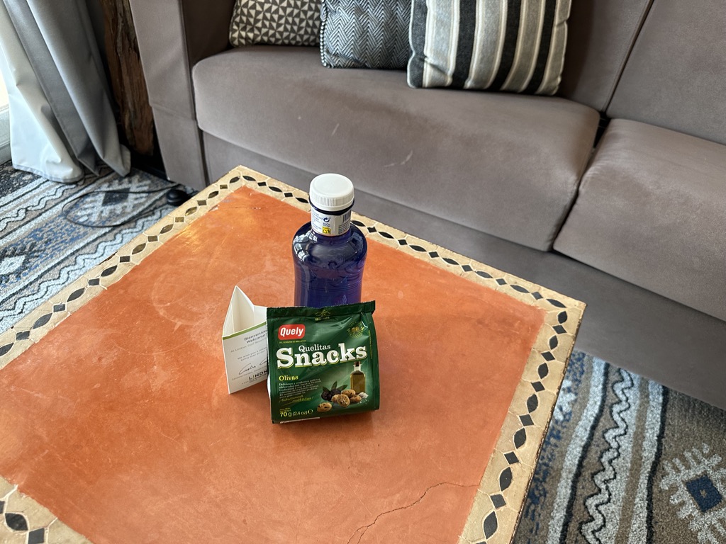 Bei der Ankunft wurden wir gefragt was wir alles für die Kinder benötigen. Neben zwei Babybetten baten wir um einen Wasserkocher, einen Windeleimer und einen Flaschenwärmer. Hier war eine sehr umsichtige Person involviert, die uns direkt noch 2 1,5Liter Flaschen stilles Wasser dazustellte. Ein toller Service. So waren wir für den ersten Tag direkt mit dem nötigen Wasser für Fläschchen versorgt.