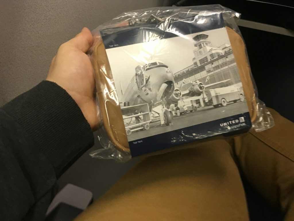 Nachdem das Boarding beendet war, wurden noch Tageszeitungen und Amenity Kits verteilt. Der Inhalt der United Airlines Amenity Kits ist auch als recht vollständig zu bezeichnen.