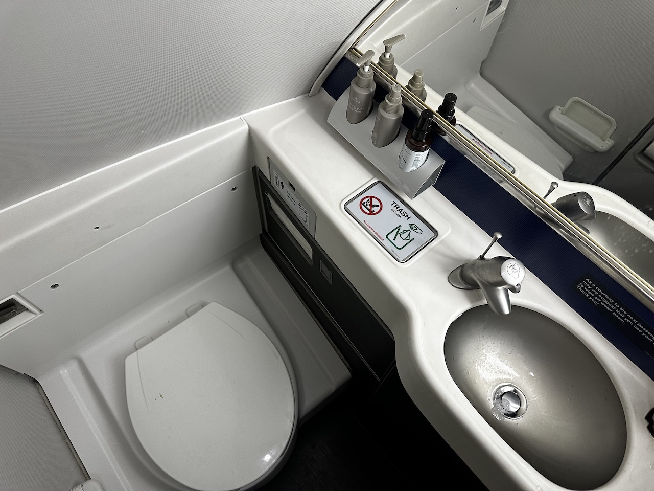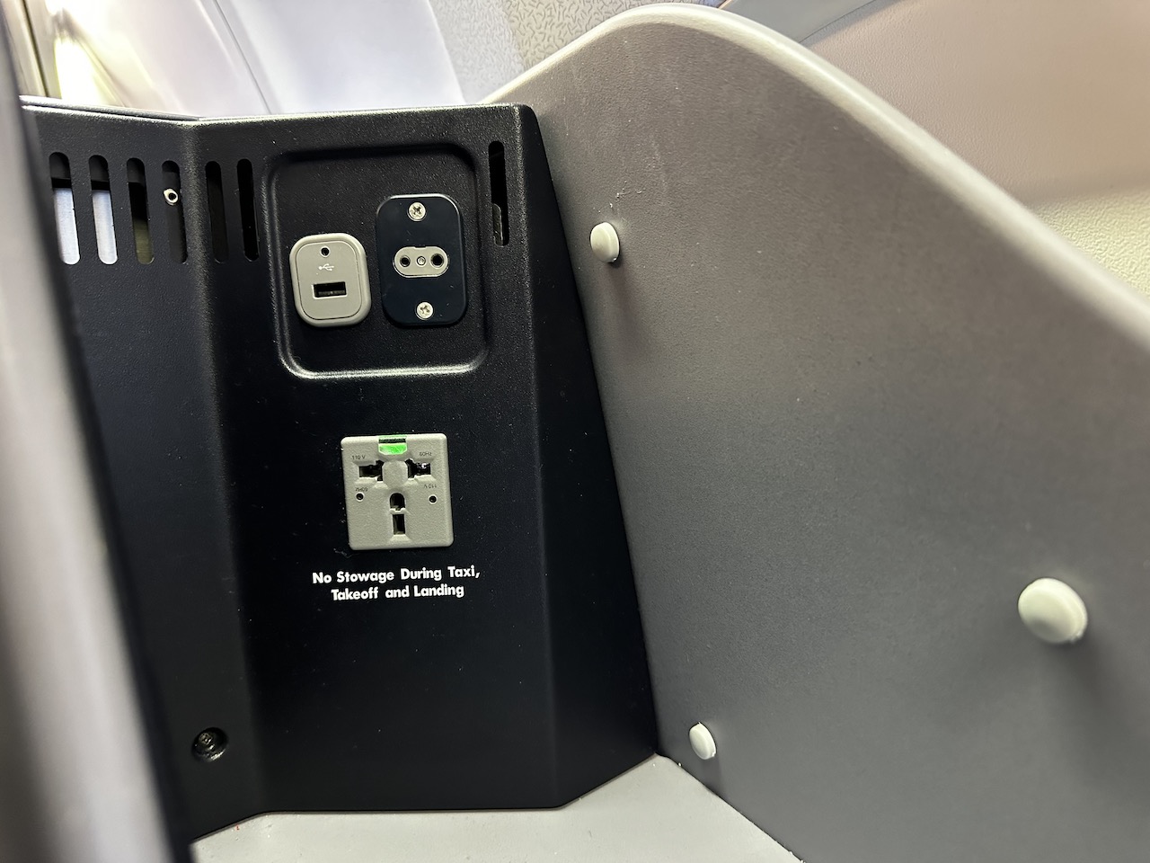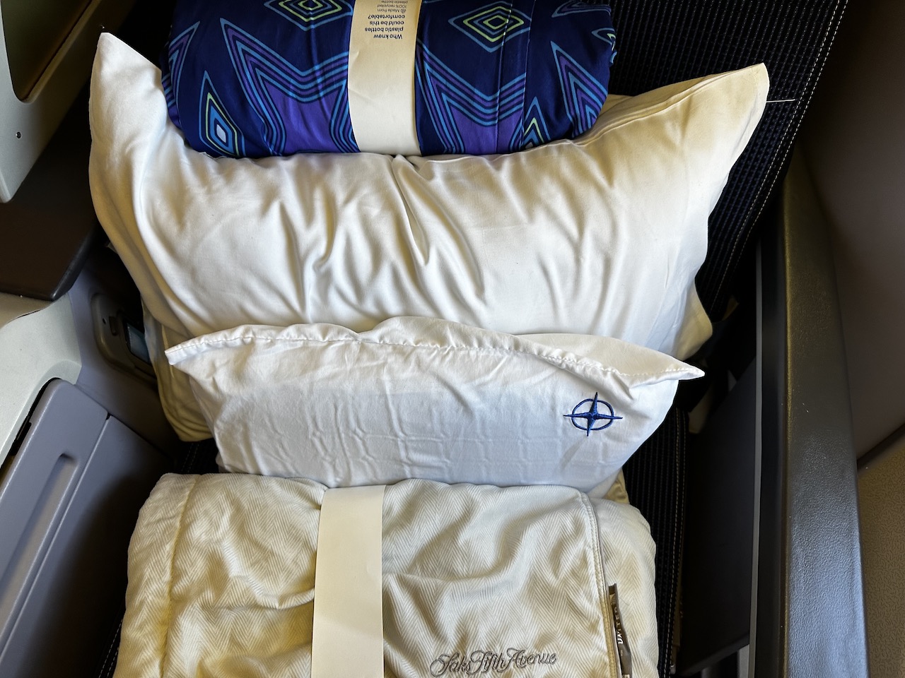 Am Sitz lagen all die Dinge, die wir vorher schon an Bord der 777 vorgefunden haben, es lagen 2 Kissen, 2 Decken, Kopfhörer, Amenity Kit und Speisekarte am oder auf dem Sitz. Es gibt Stromanschlüsse und WiFi, wobei das kostenlose Chatten nicht so wirklich funktionierte.