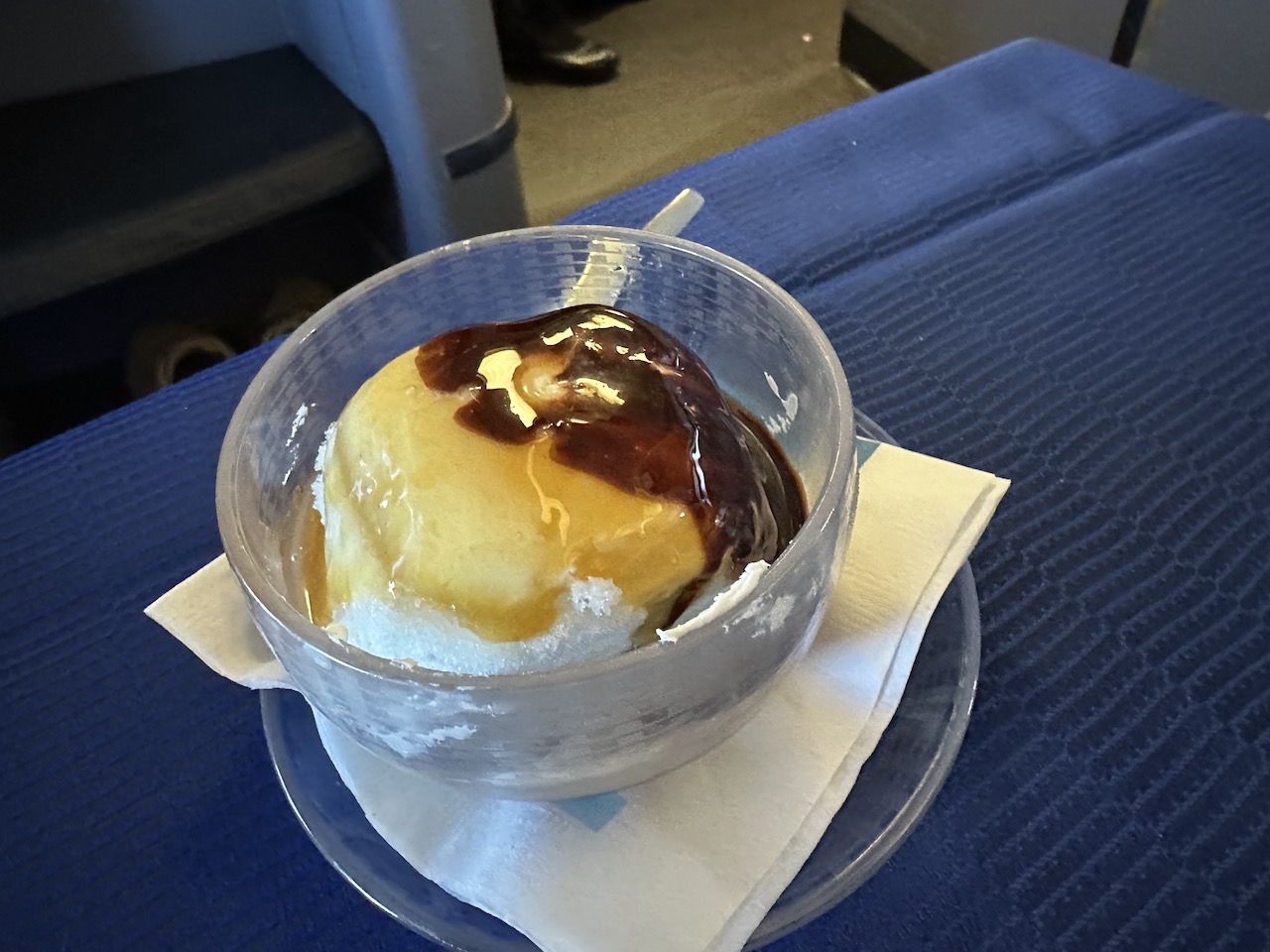Bei United wird das Sundae oft zelebriert, die meisten Kunden kennen und lieben das Eis, welches mit verschiedenen Soßen und Toppings serviert wird. Dazu gab es Kaffee, Tee und Portwein oder Baileys.