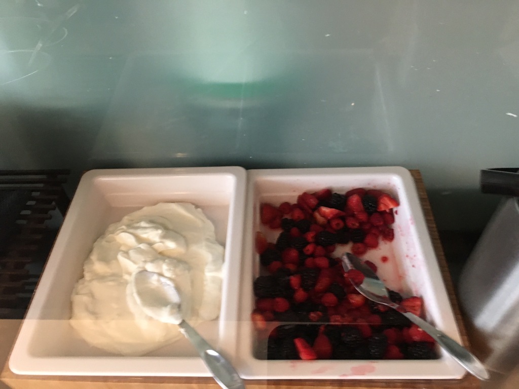 Das Angebot an Speisen ist in United Clubs meist recht überschaubar. Zum Frühstück wurden im United Club Cleveland an einem kleine Buffet frische Beeren, Joghurt, Müsli,Haferbrei und Muffins angeboten.