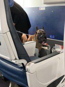 Etwas überrascht war ich von dem Sitznachbar, welcher in der Reihe vor mir Platz genommen hat. Hier hatte eine Dame einen etwa 40 Kilogramm schweren Schäferhund dabei. Eigentlich müssen solche Tiere im Frachtraum fliegen, aber dieser Hund galt als Emotional Support Dog und durfte daher in die Kabine. Eine Ausnahmeregelung in den USA, welche Hundebesitzer leider nur all zu gerne nutzen.