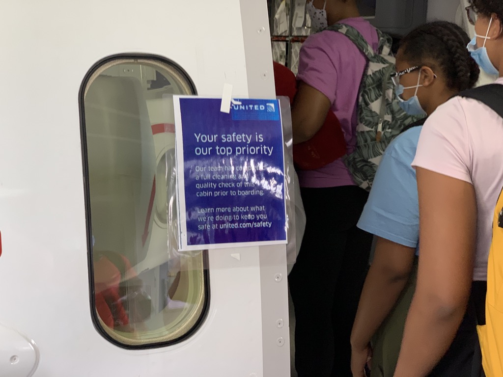 An Bord von allen United Airlines Flugzeugen und auch beim Boarding herrscht eine Maskenpflicht und diese wird auch recht deutlich angekündigt. Grundsätzlich ist United auch dazu über gegangen, Passagiere, welche sich dieser Pflicht entziehen wollen, auf eine no fly Liste zu setzen. Auf meinem Flug gab es hier allerdings keinerlei Probleme und alle Passagiere haben die Maske getragen.