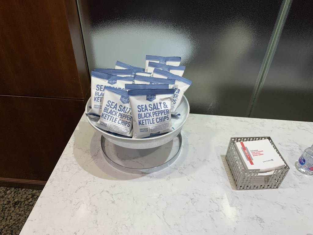 Das Angebot an Snacks war in United Clubs immer nicht besonders überwältigend, allerdings bietet man aktuell nur abgepackte Kekse und Chips, sowie einige Müsliriegel.