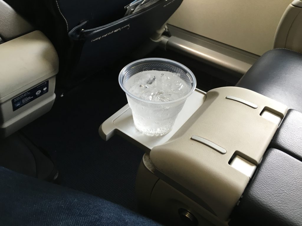 Zum Service in der United Express First Class gehört ein „pre departure beverage“, welches vor dem Start, also während dem Boarding serviert wird. Hierbei kann man aus der gesamten Bordbar, inklusive alkoholischen Getränken, wählen. Das „pre depature beverage“ wird immer in einem Plastikbecher serviert. So kann man es auch noch beim Start bei sich behalten, sollte man es nicht ausgetrunken haben, bis es die Crew einsammelt.