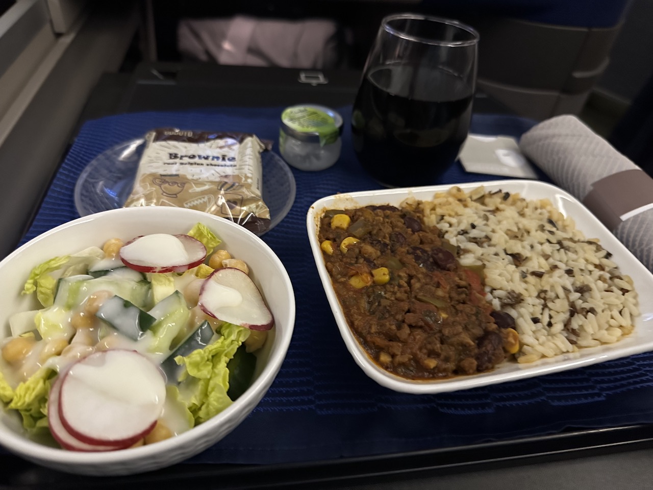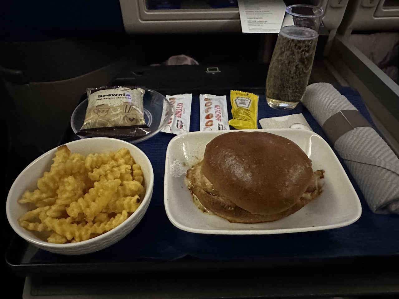Vor der Landung dann noch ein zweiter Service mit Burger samt Pommes oder Chilli mit Reis.
