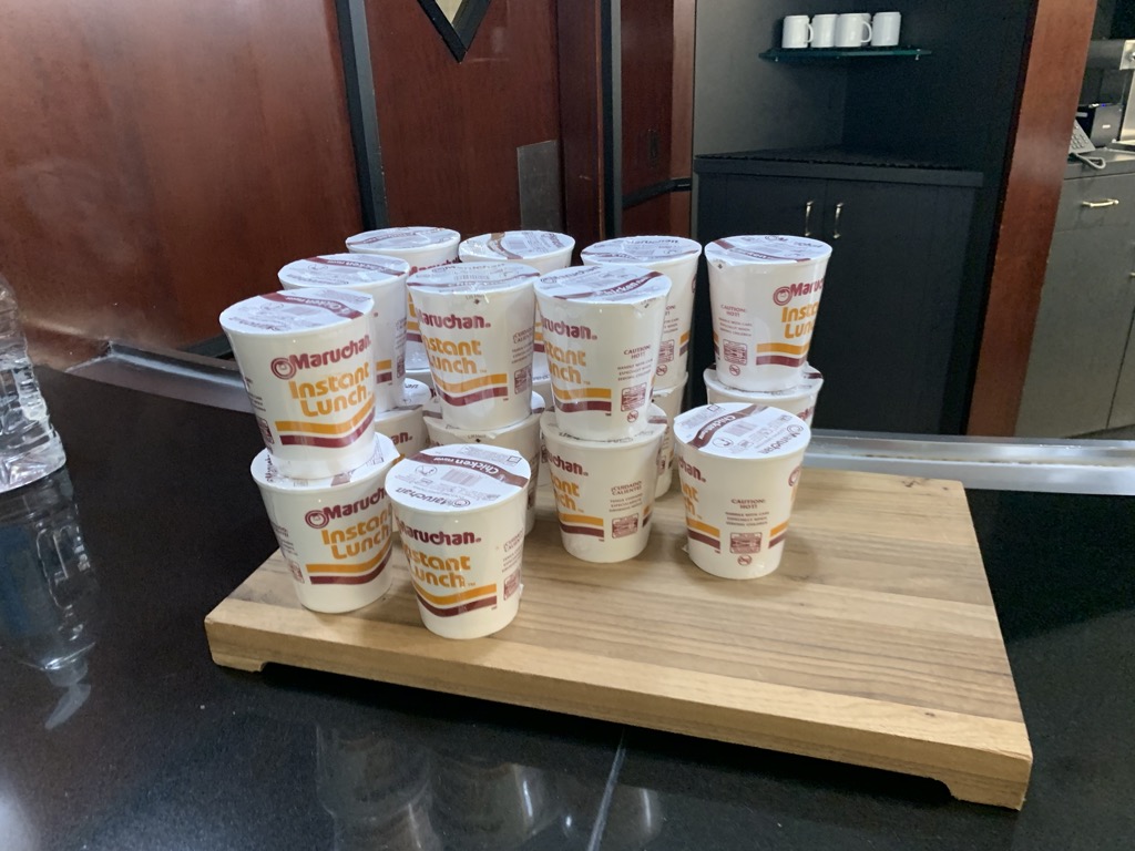 Neben diesem sehr fragwürdigen Polaris Snack, gab es in dem United Club in Houston den vollen Barservice, sodass man hier alle Soft Drinks und auch Bier, Wein, Sekt und Spirituosen erhalten konnte. Auf Buffets in der Lounge verteilt gab es auch noch abgepackte Snacks wie Äpfel, Kekse, Chips und Instant Nudelsuppe. Sicherlich kein beeindruckendes Angebot, aber im Vergleich zu dem was man sonst in United Clubs gefunden hat, auch nicht katastrophal.