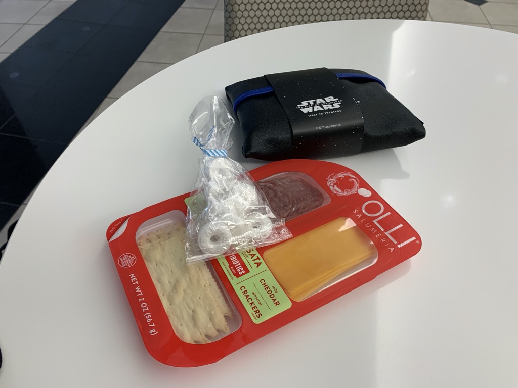 Beim Check-In in den United Club wurde mir als Polaris Passagier ein Amenity Kit und freudestrahlend eine Karte überreicht, mit welcher ich an der Bar ein kleines Extra als Polaris Gast bekommen sollte. Ich emfand dies als sehr freundliche Geste, zumindest bis ich das kleine Extra gesehen habe. Es waren Cracker, Käse und Wurst, welche man im Supermarkt für 99 Cent findet. Was ich davon halten sollte ist mir bis heute nicht klar.