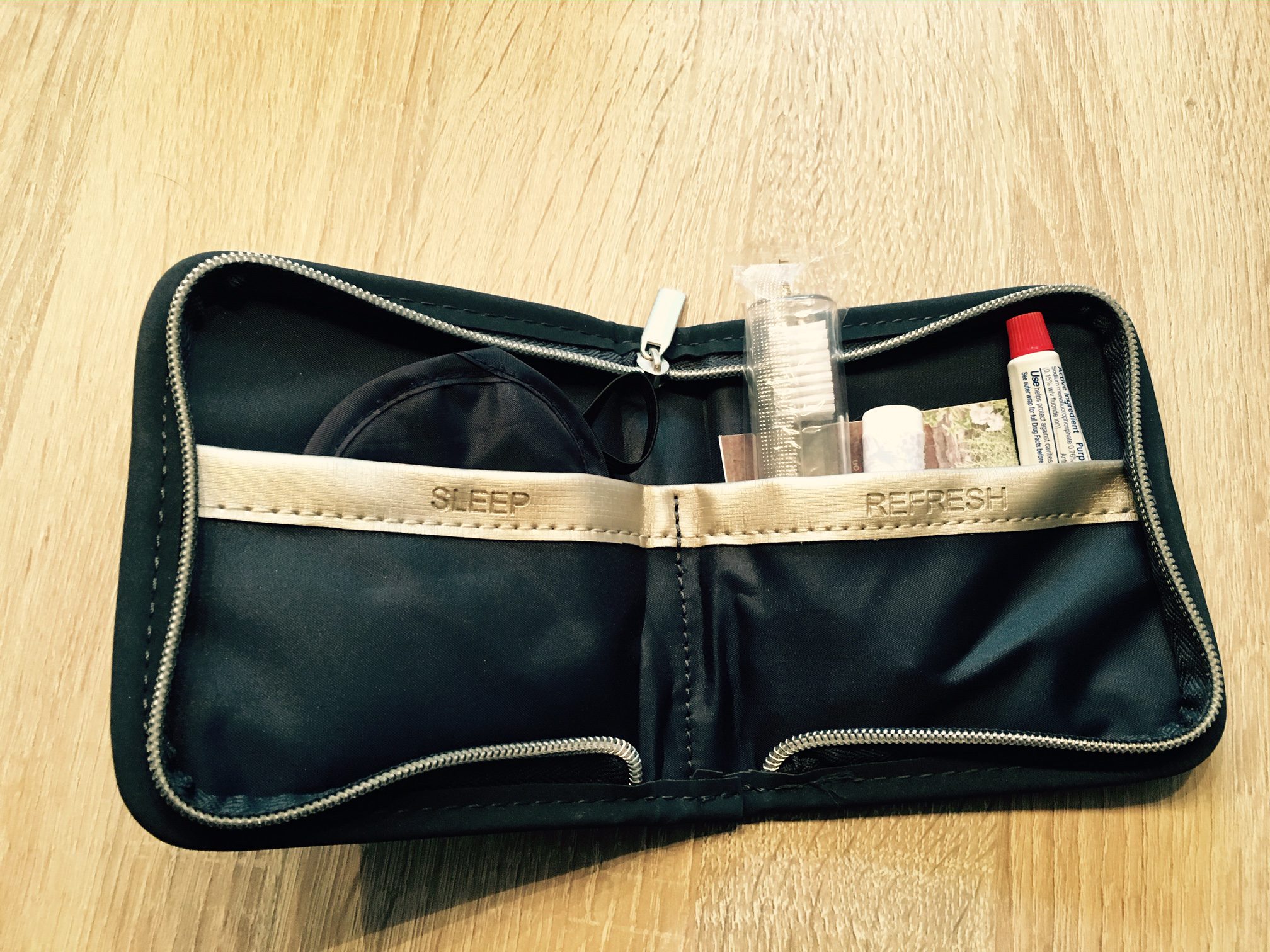 Auch ein kleines Amenity Kit gab es für alle Passagiere der Business Class. Zwar war es bei weitem nicht so umfangreich wie in der United Polaris Business Class auf der Langstrecke, dennoch bot es alles für einen angenehmen fünf Stunden Flug.