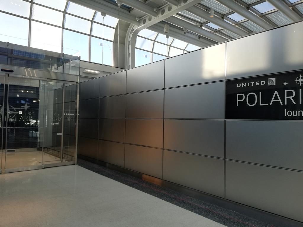 Die Polaris Lounge wurde in die Räumlichkeiten der ehemaligen Global First Class Lounge gebaut und der prominente Eingang befindet sich direkt neben dem United Service Center.