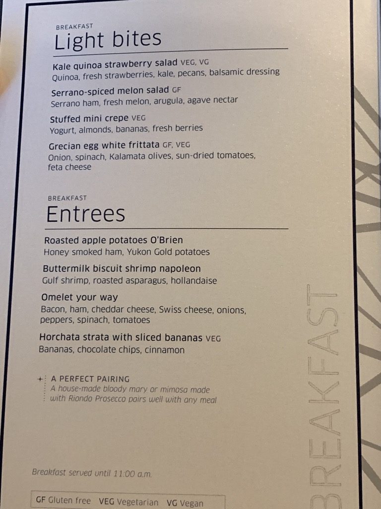 Die Karte ist hierbei zwar klein, aber es gibt immer einige gute Optionen. Dabei finde ich das Angebot immer besser, als zum Beispiel in der British Airways First Class Lounge in London.