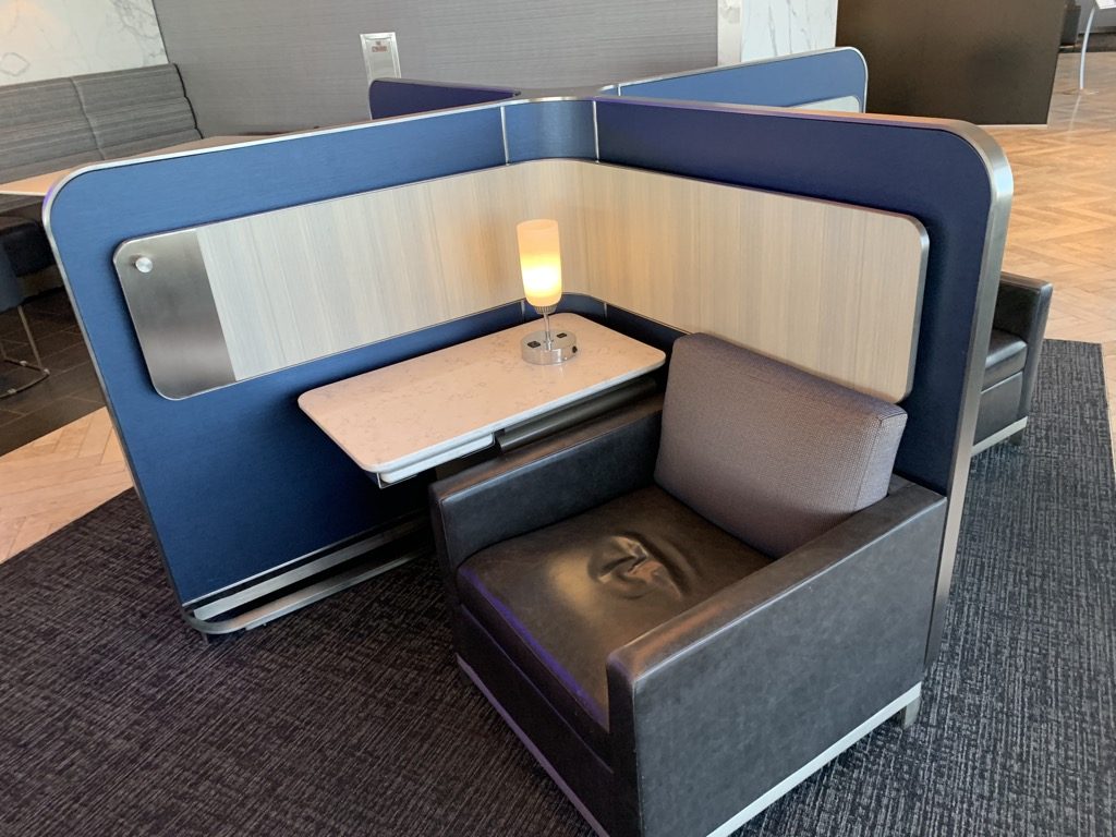 Die United Polaris Lounge ist in aller erster Linie erst mal eine Lounge und entsprechend gibt es hier vor allem eine ganze Reihe von Sitzgelegenheiten. Nach dem Eingang und dem Service Desk, kommt man erst einmal zu einer Reihe von Sitzecken. Hierbei kann man in diesen sehr ruhig und privat arbeiten oder sich ausruhen und diese Sitzecken sind sehr beliebt.