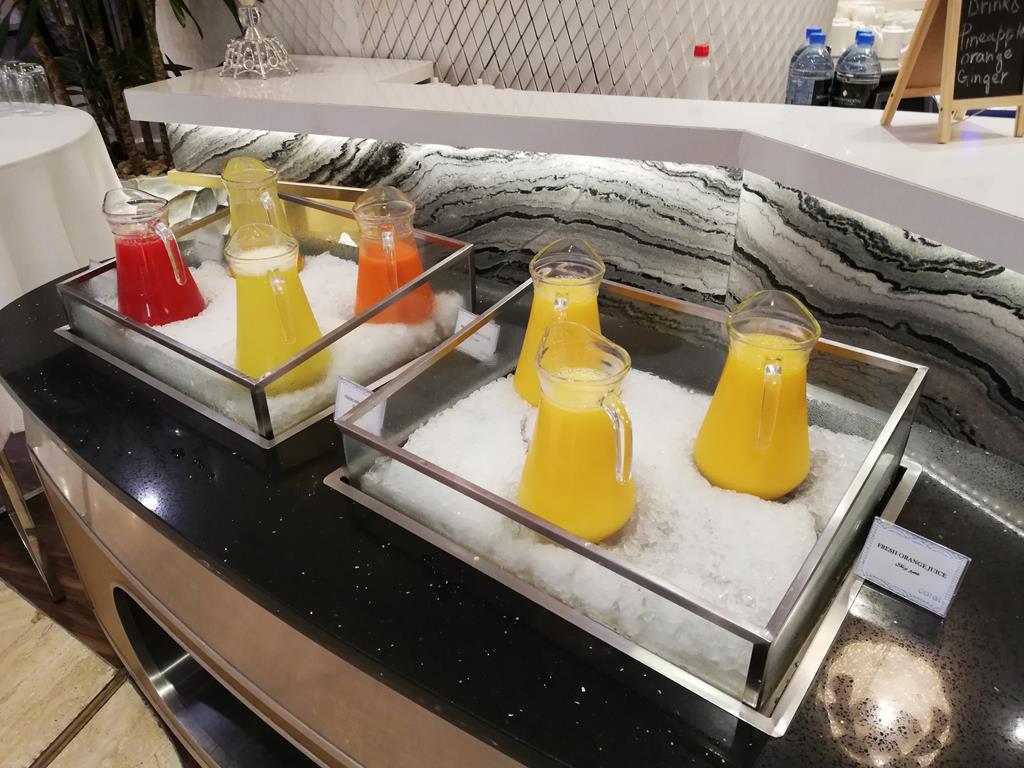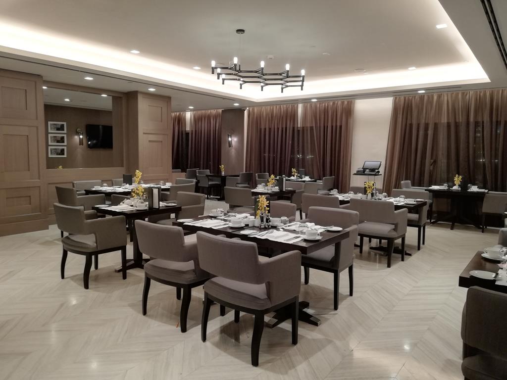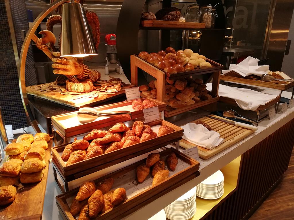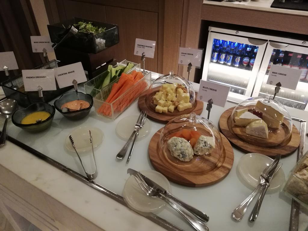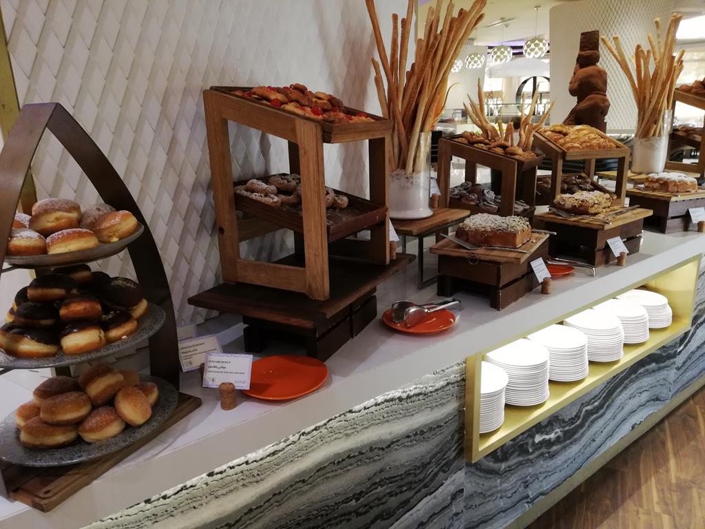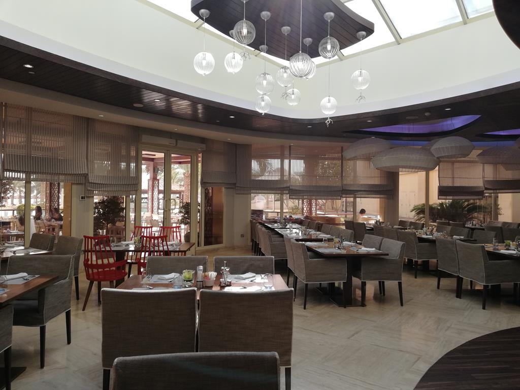 Auf der linken Seite befindet sich der Restaurantbereich und das Buffet. Hier wird mehrmals täglich, abhängig der Tageszeit, Essen serviert. Neben Frühstück, gibt es hier Mittagessen, Afternoon-Team und Abendessen mit einer Happy Hour. Man darf sich am Buffet bedienen, allerdings wird auch am Platz serviert.