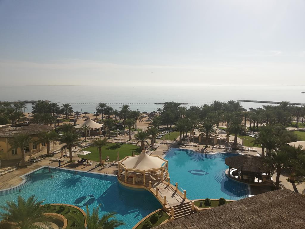 Die Zimmer verfügen über eine große Fensterfront, von der man einen tollen Ausblick über das Hotel aber auch die Skyline von Doha hatte.