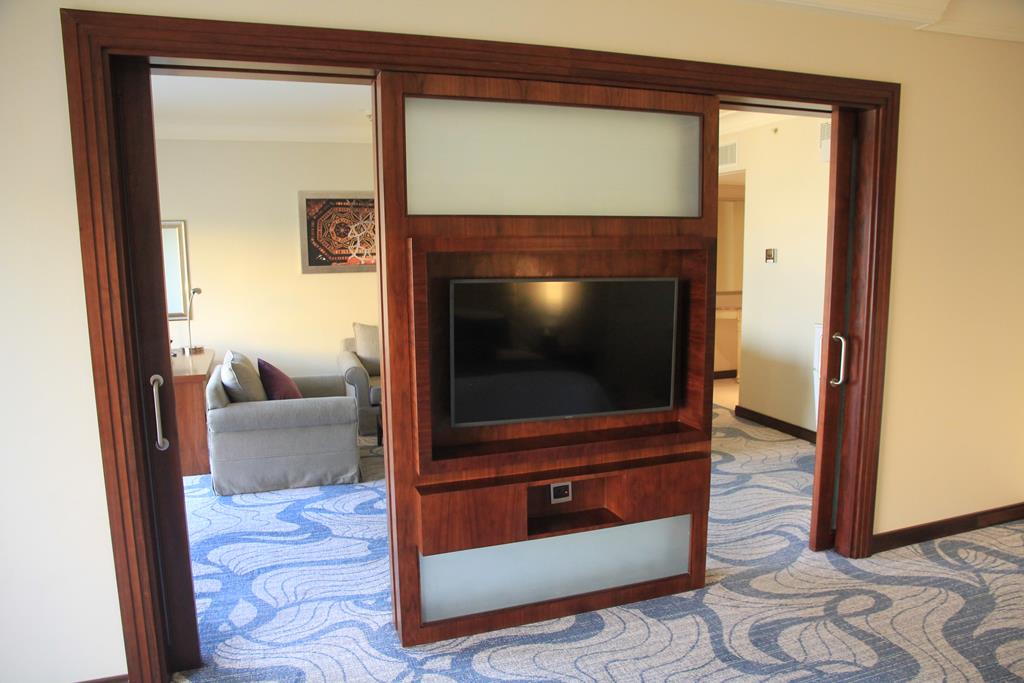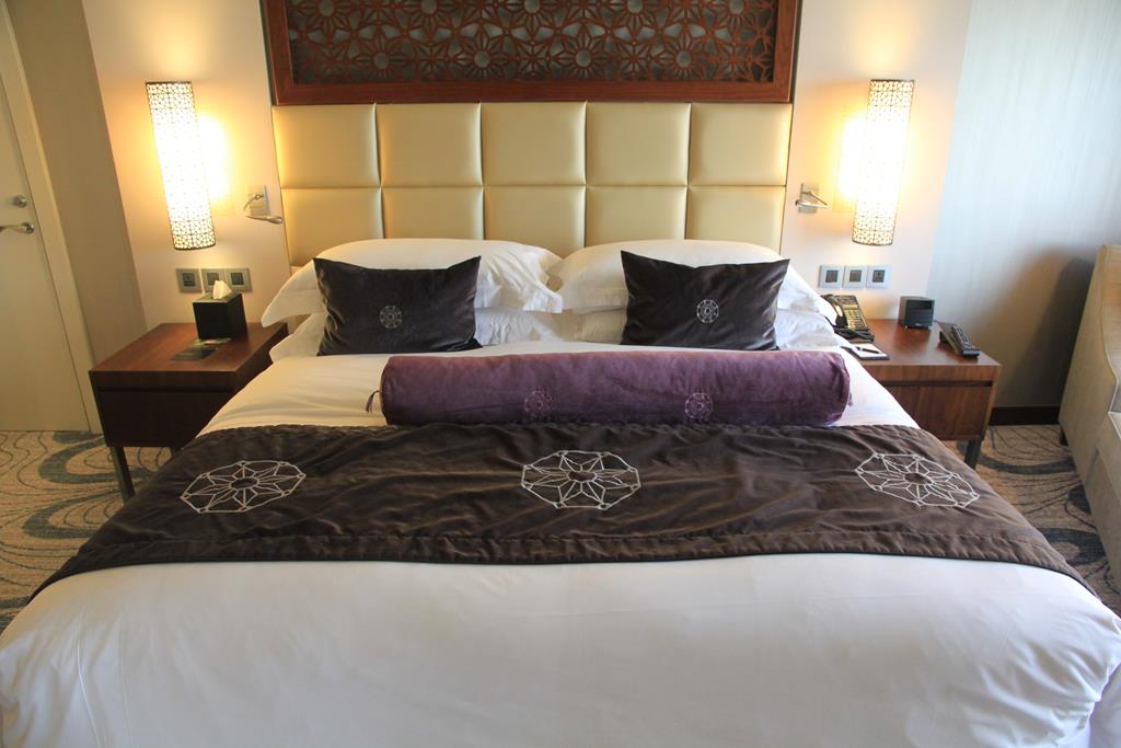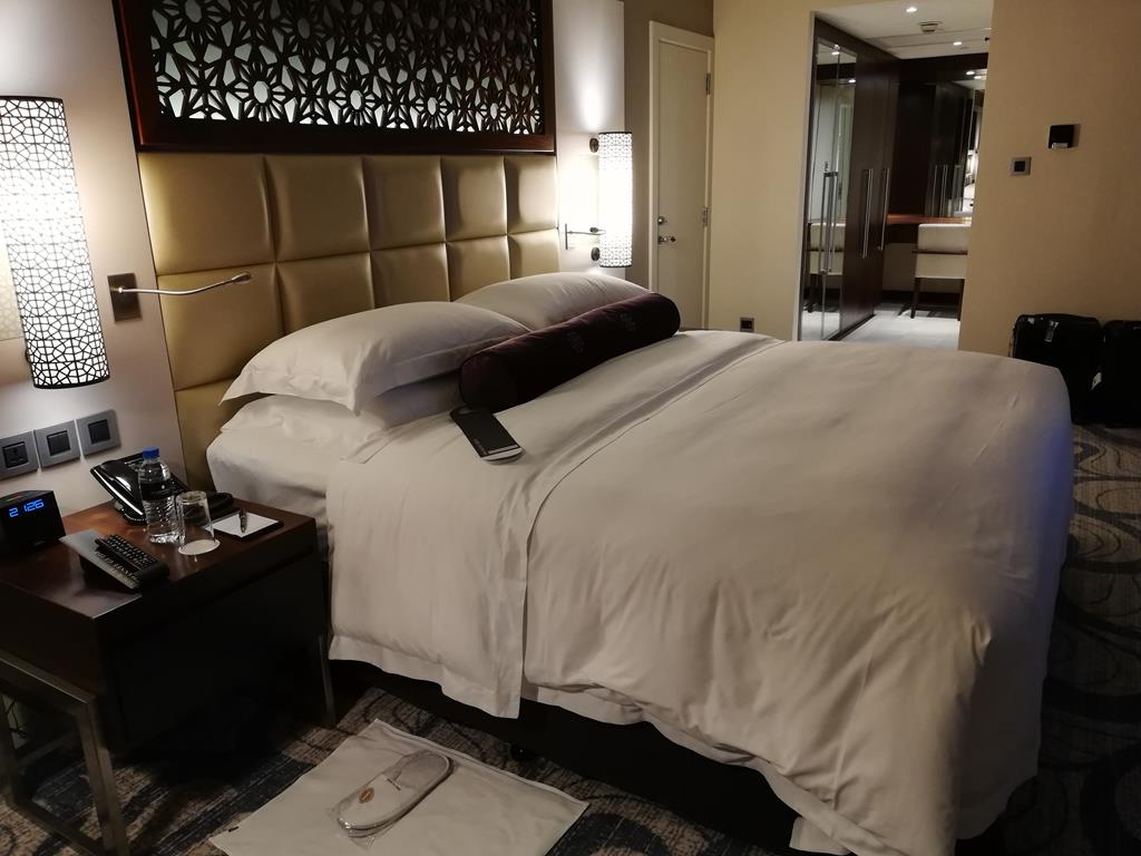 Das Schlafzimmer ist in etwa so groß wie der Wohnbereich der Diplomatic Suite. Das Bett ist wirklich groß und wir hatten hier als vierköpfige Familie Platz. Man hatte uns sogar proaktiv ein Beistellbett für den Junior auf das Zimmer gestellt. Diese haben wir aber nicht genutzt.