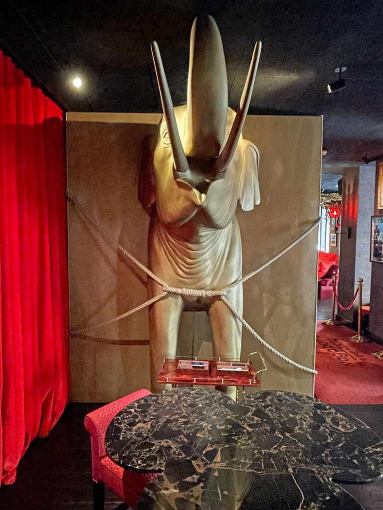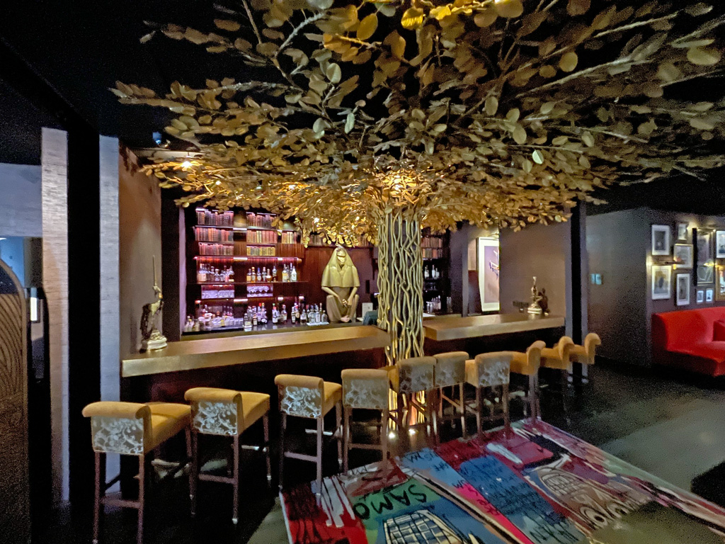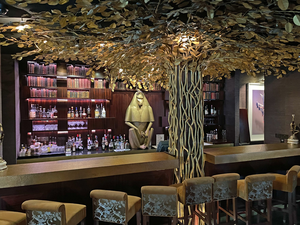 Geht Ihr im Restaurant links herum, erreicht Ihr bald die Bar. Diese liegt unter einem goldenen Baum und wird von einer goldenen Statue des ägyptischen Gottes Thot.