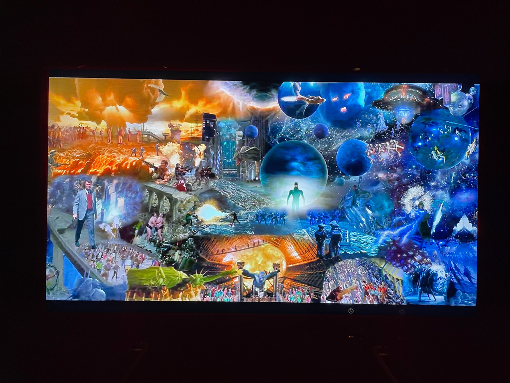 Im Aufzug selbst herrscht Aufregung. Ein atemlos zusammengeschnittenes Video aus bekannten Filmen, Theater- und Opernaufführungen läuft dort in Dauerschleife – begleitet vom Säbeltanz aus dem Ballett Gayaneh von Aram Khachaturian. (Man möchte nicht in dem Aufzug stecken bleiben.)
