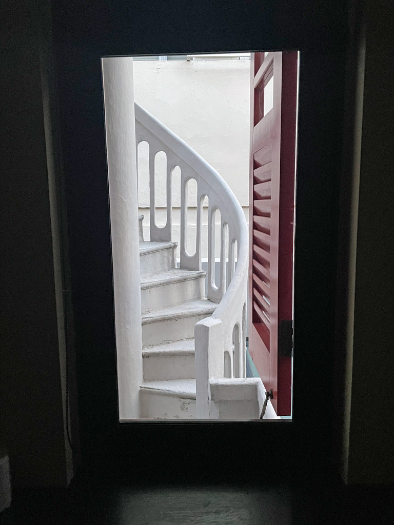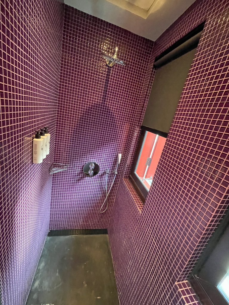 Dabei fiel eines auf: Wer in dem Zimmer wohnt, muss entweder penibel darauf achten, die Fenster in der Toilette, der Dusche und im Bad durch Rollos zu schützen oder darf nicht schüchtern sein. Der kleine Innenhof ist eine Gemeinschaftsfläche und von dort bzw. einer Treppe kann man problemlos ins Zimmer sehen. Die Fenster selbst haben keinen verzerrenden Effekt o.ä.