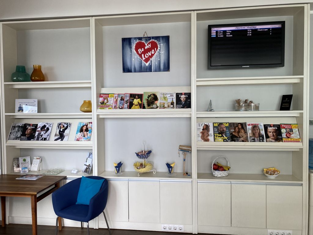 Aber erstmal einchecken und dann schauen, was wir aus der Situation machen. Und so gingen wir zunächst zum Checkin-Schalter von Austrian Airlines. Dort erklärte uns der Agent, dass wir leider als Business Class Gäste in Varna keine Lounge-Zugang haben, da die Lufthansa Group keinen Vertrag mit der örtlichen Lounge hat. Witzig, denn am Economy Class Checkin klebten fette Aufkleber „Jetzt wie Business Class fühlen – Lounge-Zugang für nur 20 Euro kaufen“. Zum Glück hatten wir Lounge-Zugang über unsere Priority Pässe unserer American Express Platinum Card. Und noch größeres Glück, denn der Mitarbeiter informierte uns, dass die Lounge Airside gegenüber des Gates 1 liegt. Also hinter der Sicherheitskontrolle und damit deutlich entspannter.