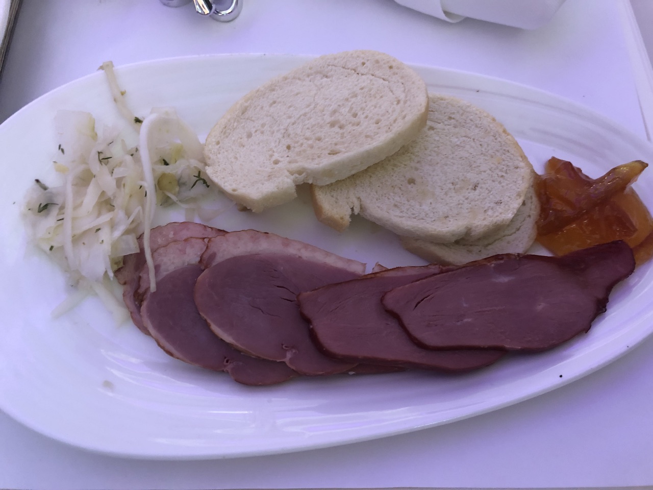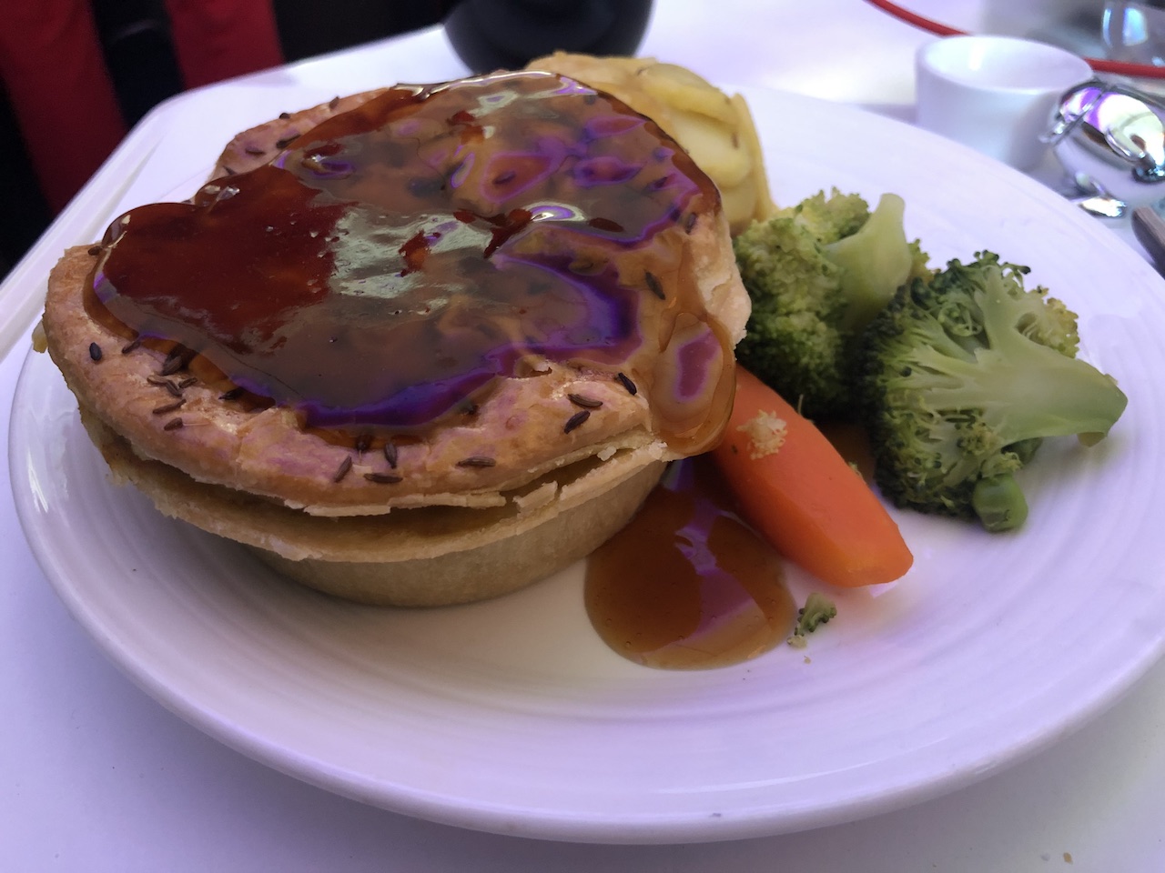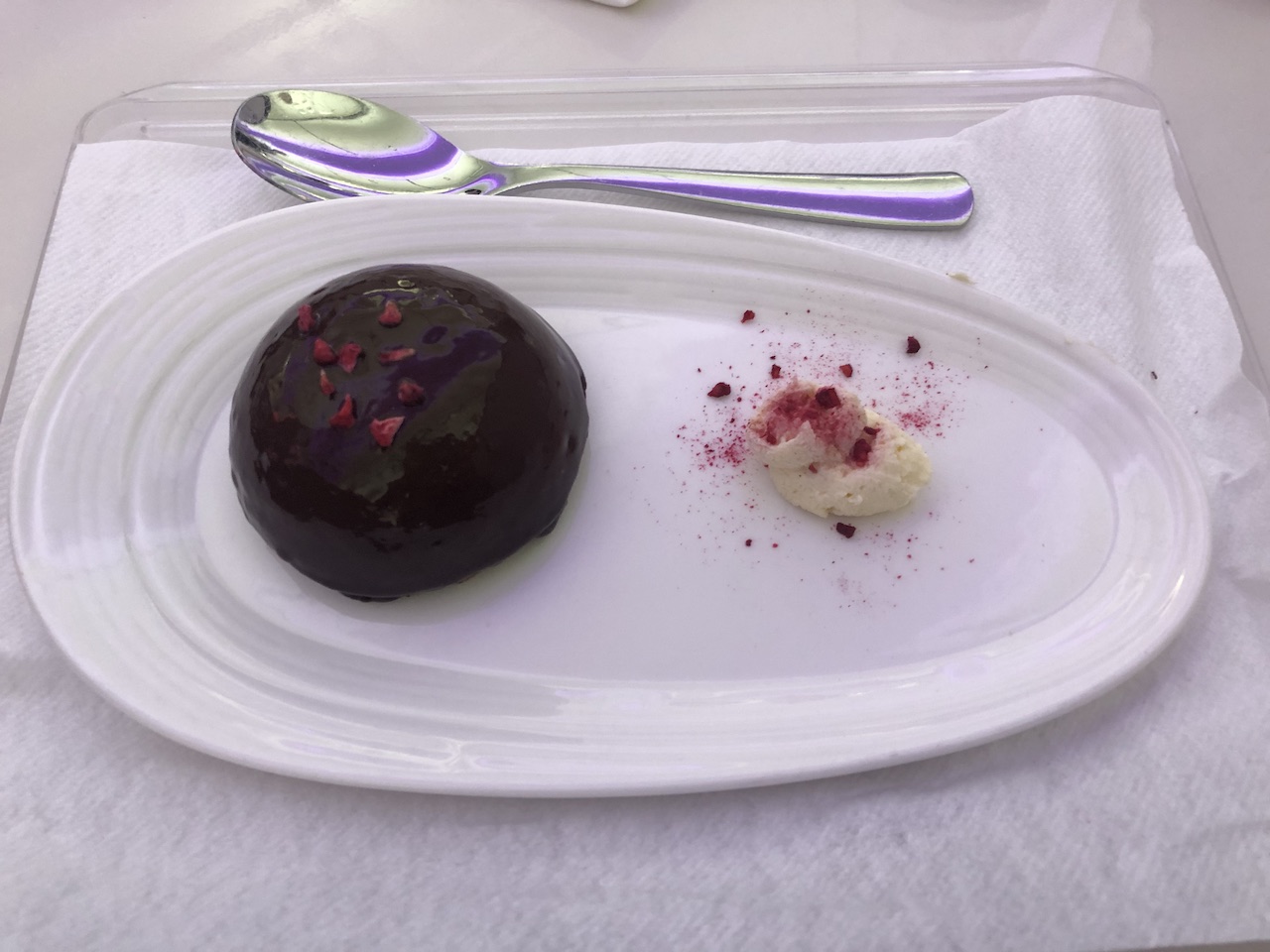Knapp 90 Minuten vor der Landung wurde es wieder etwas lebendiger in der Kabine, der zweite Service startete. Wir bestellten wieder zwei Varianten- Crab Cakes und den High Tea. Sandwich und Wrap waren leider ziemlich labbrig, aber ok. Das Gebäck war 1A und die charmante Crew auch zum Abschluss der Reise immer noch motiviert und gut gelaunt.