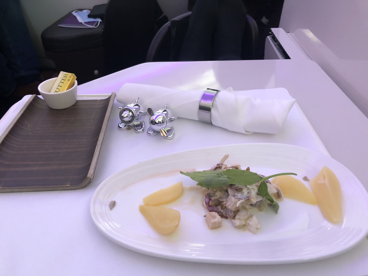 Auswahl der Getränke, Essen und Präsentation der Mahlzeiten waren sehr gut, der Schlafkomfort ist durch die Matratze und dem weichen Bettzeug hoch. Die Bar ist natürlich auch außergewöhnlich, Ansammlungen von Passagieren könnten im hinteren Bereich der Kabine störend sein. Bei uns war der Flug zwar ausgebucht, es ging jedoch ziemlich ruhig zu.