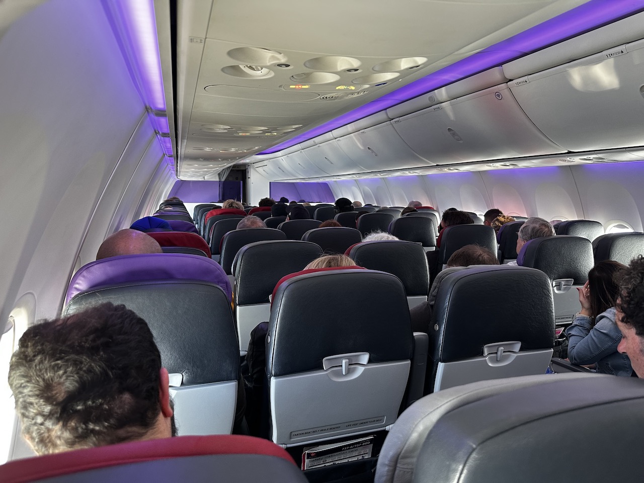 Alle Flugzeuge die wir gesehen haben waren identisch ausgestattet, die Sitze mit Leder bezogen, verstellbare Kopfstützen, Moodlight und WiFi.